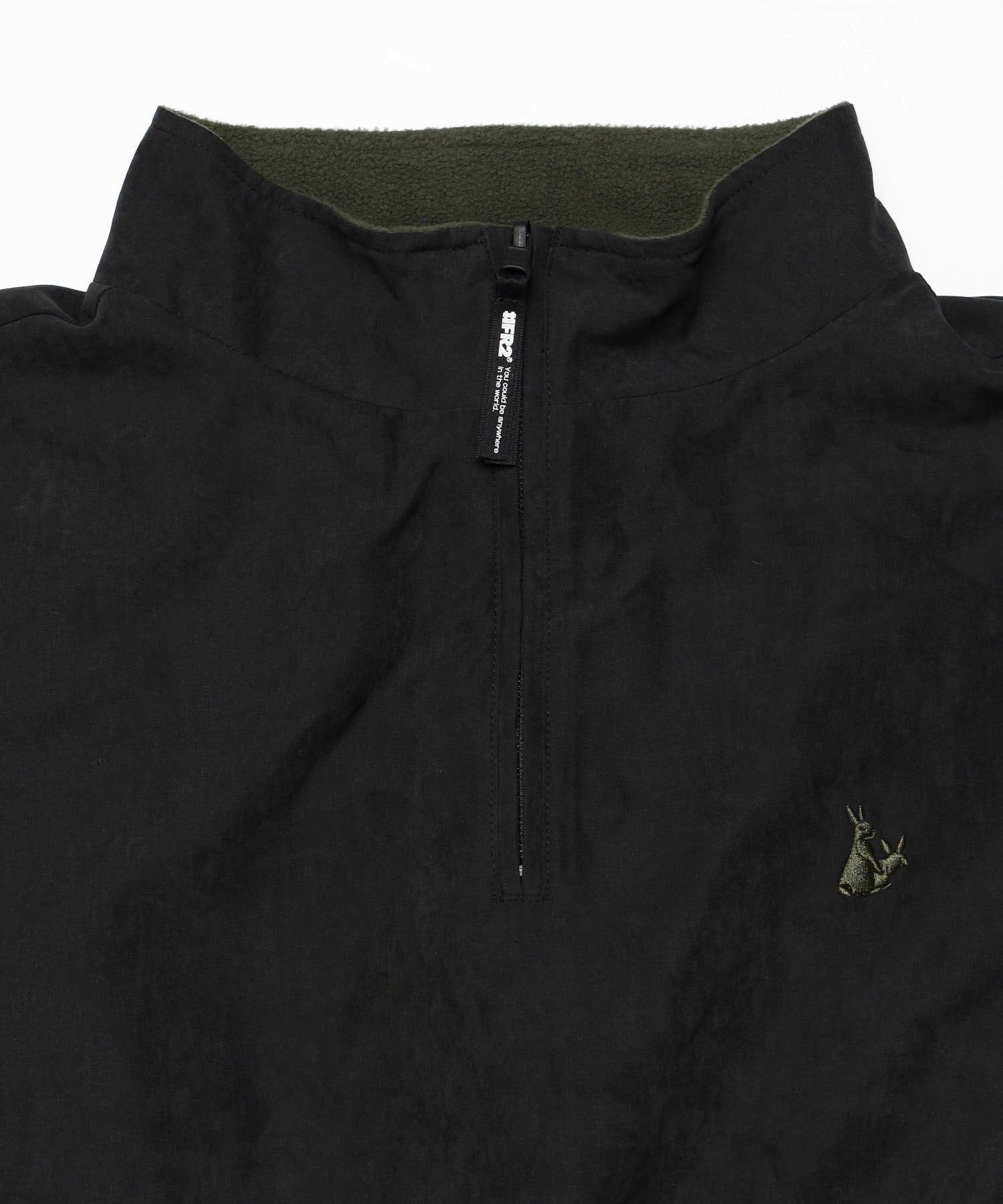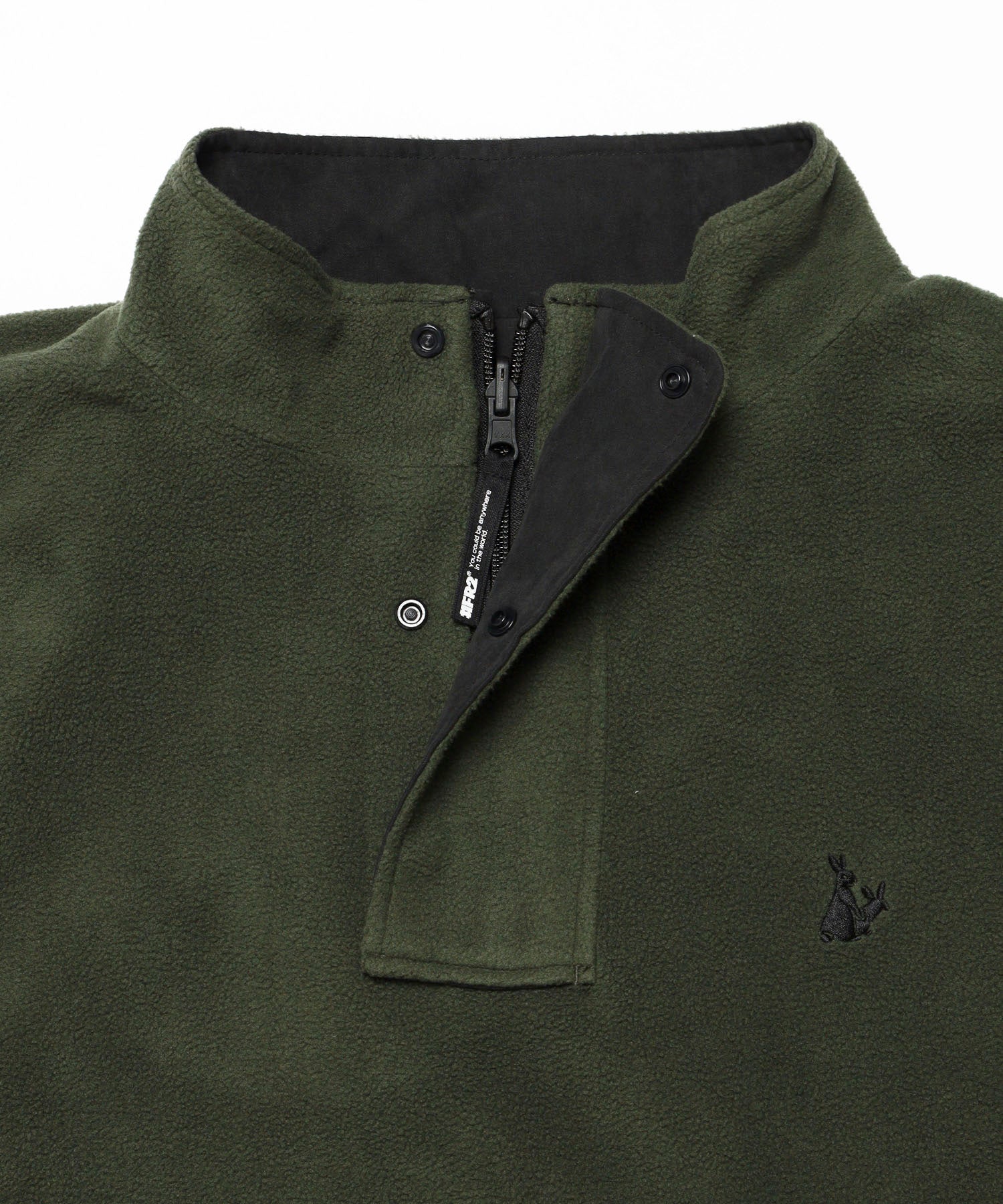 さらっとした肌触りで着心地の良い生地と、温もりもあるボアフリース素材を使用し気分やコーディネートに合わせてリバーシブルで合わせられる一着。 裾や袖元はリブを取り付け中に風が入りにくく配慮しつつ、ネックにも高さをつけることで防寒性も配慮。ジップに取り付けられた引手はオリジナルテープを採用。 シンプルで着回し力も高く幅広く活躍出来るアイテムです。 型番:FRJ195