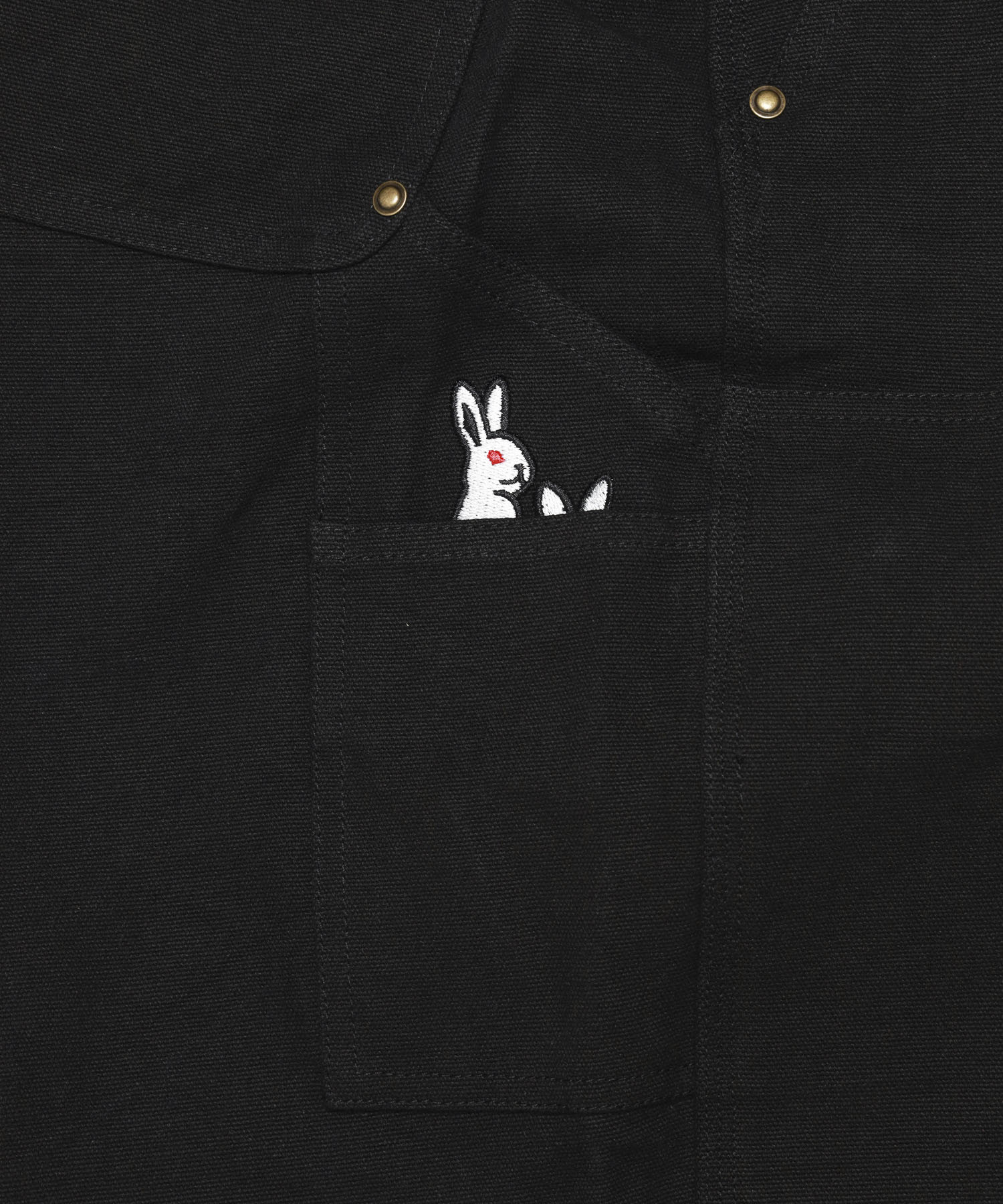 ハリ感のあるしっかりとした生地にウサギをメインに取り入れたグラフィックをパンツ全体にプリントで落とし込んだ一本。 ペインターパンツのディテールはそのままにショート丈にすることで太めのシルエットでラフな雰囲気に。バックにはロゴやアイコンを刺繍でオン。 ソックスや長袖のトップスとも相性が良く、これから着回せるアイテム。 型番:FRP387