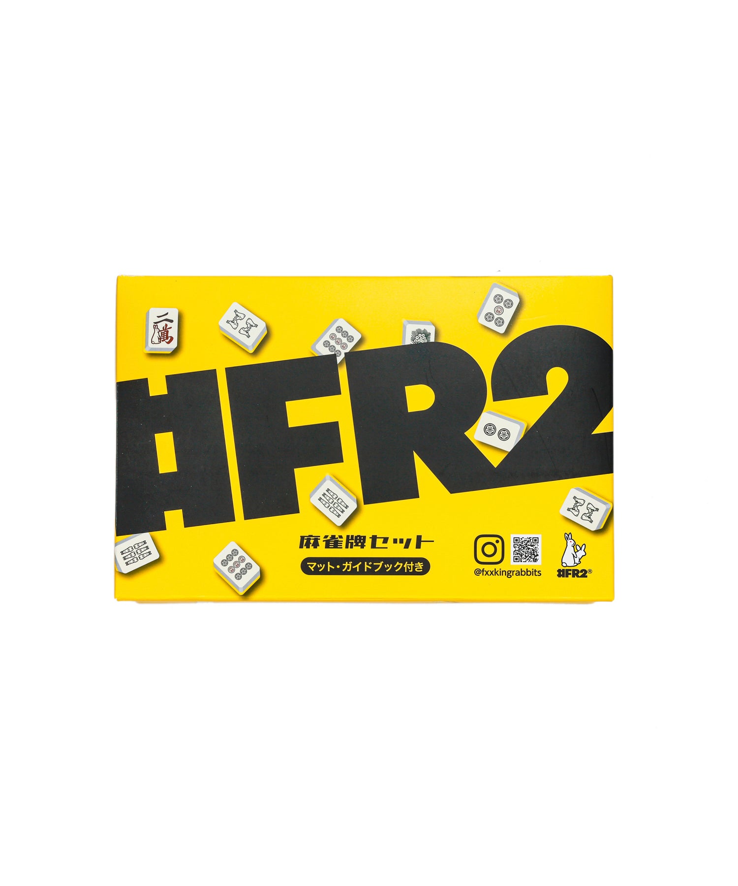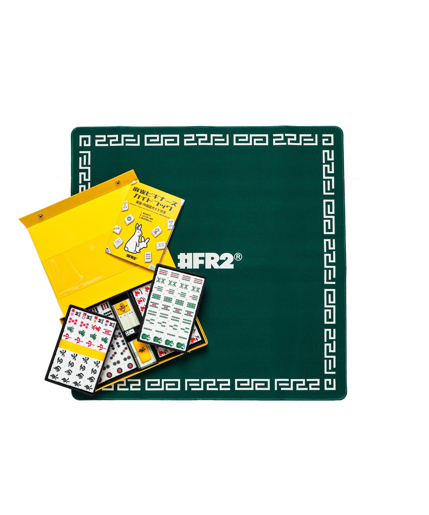 #FR2オリジナルの麻雀牌のセット。外装・牌・マット全てがオリジナルデザイン。