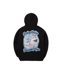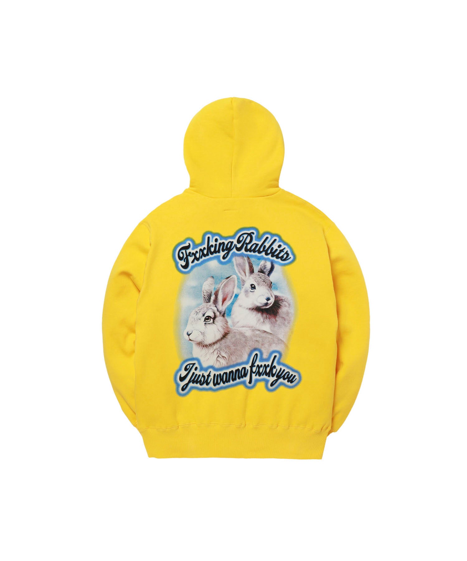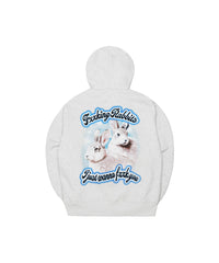 エアブラシで描かれたようなリアルな雰囲気のウサギとロゴを組み合わせたグラフィックをバックに落とし込んだ一枚。フロントにも同様の風合いでロゴをオン。温もりのある起毛素材で着心地も良好。 型番:FRC4015