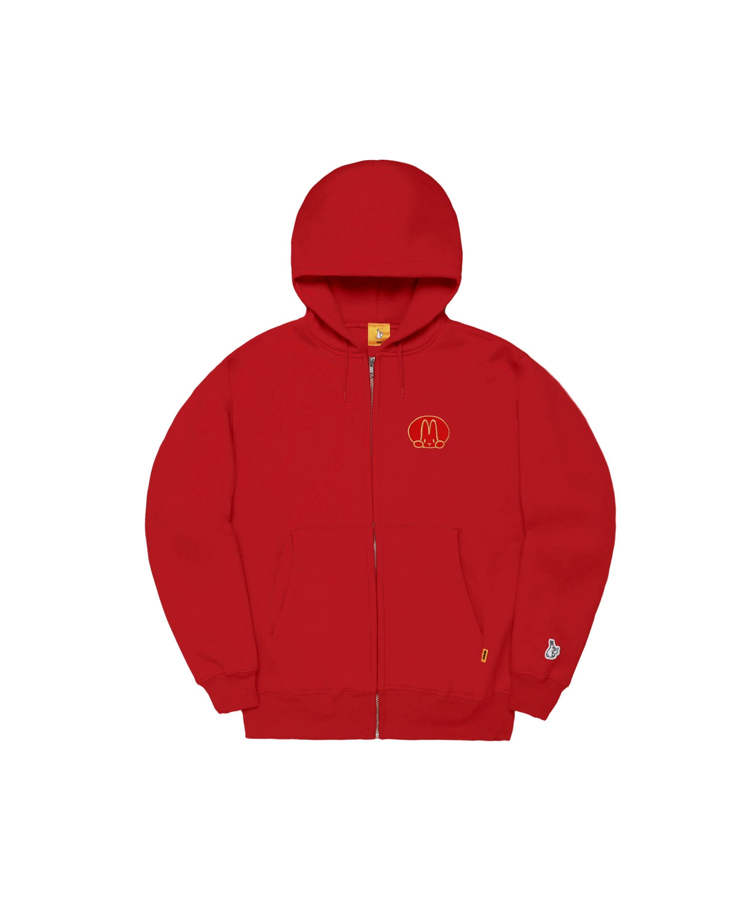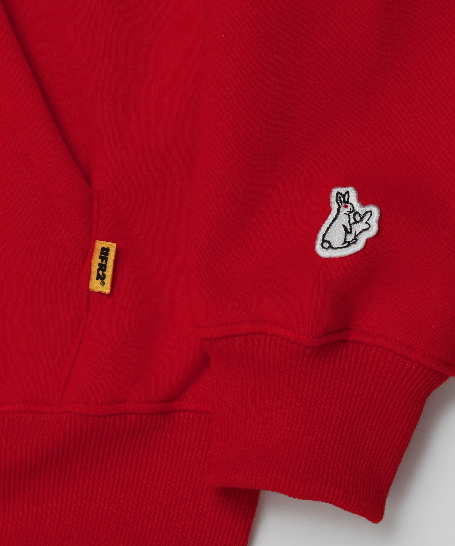 ライトアウター感覚でさらっと羽織ることもできるジップパーカー。程良い厚みと起毛素材で温もりもあり着心地も良好。 フロントはポップな雰囲気のウサギを刺繍しつつ、バックに大きめにプリントで落とし込み存在感もある仕上がり。 型番:FRC4022