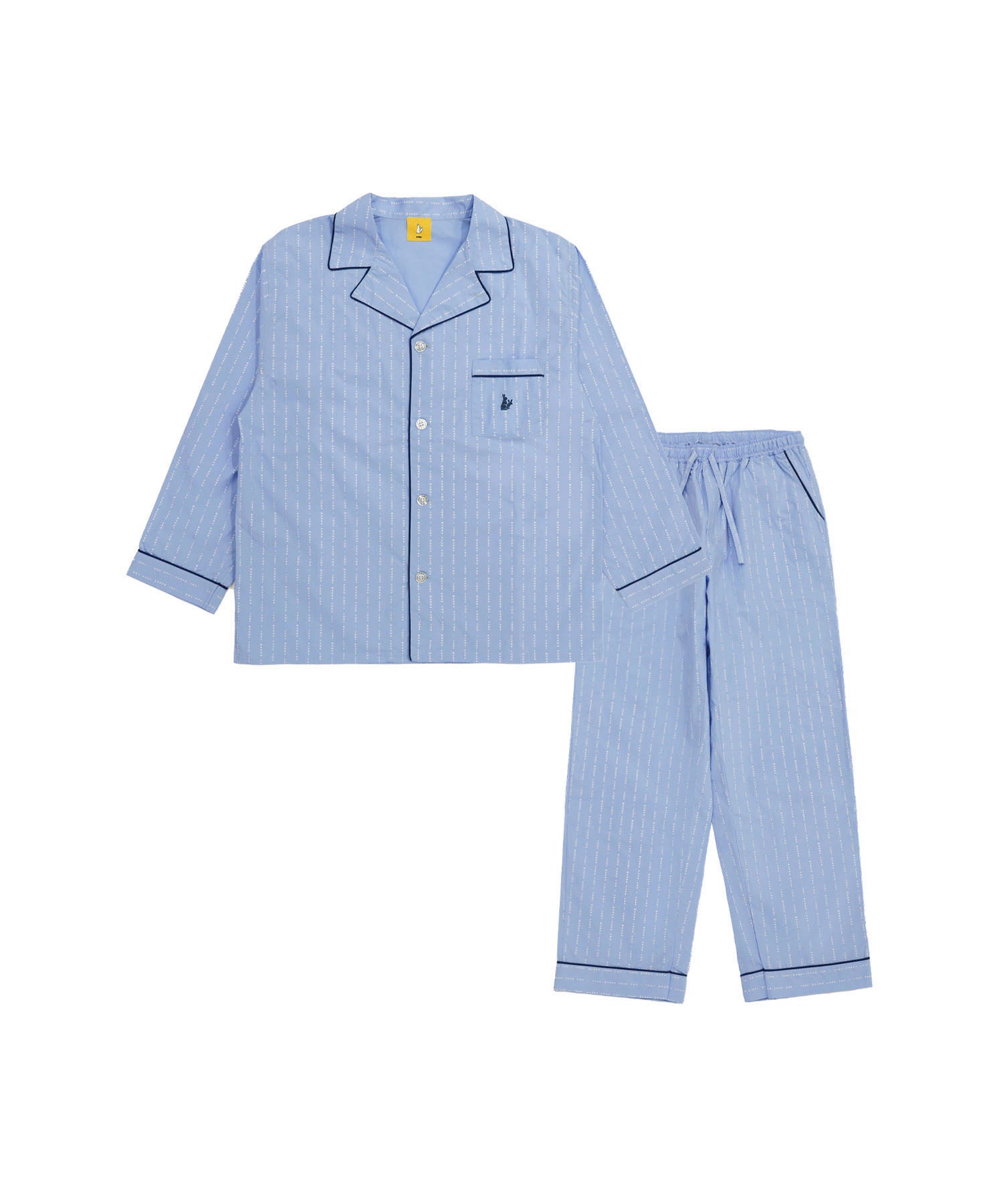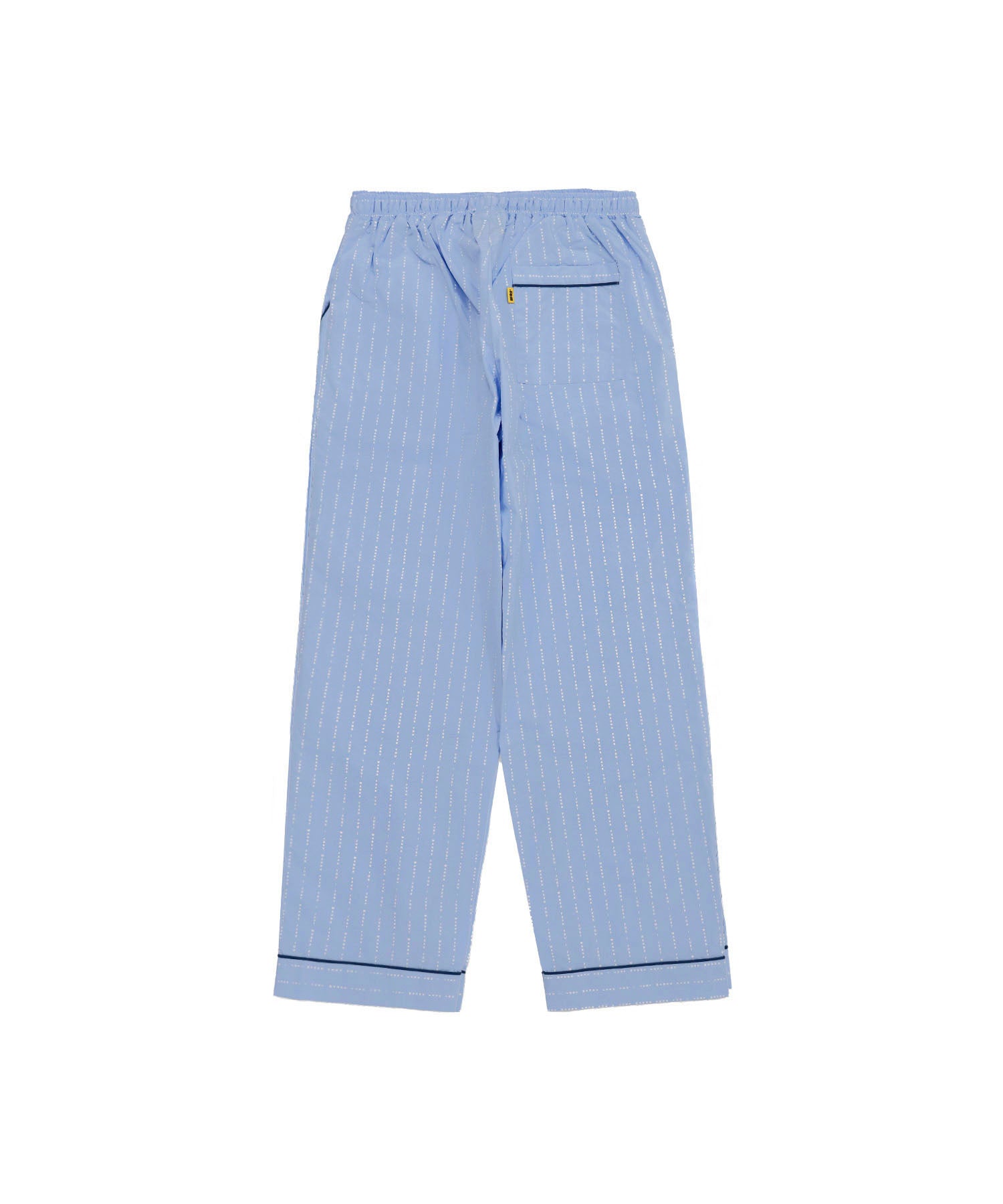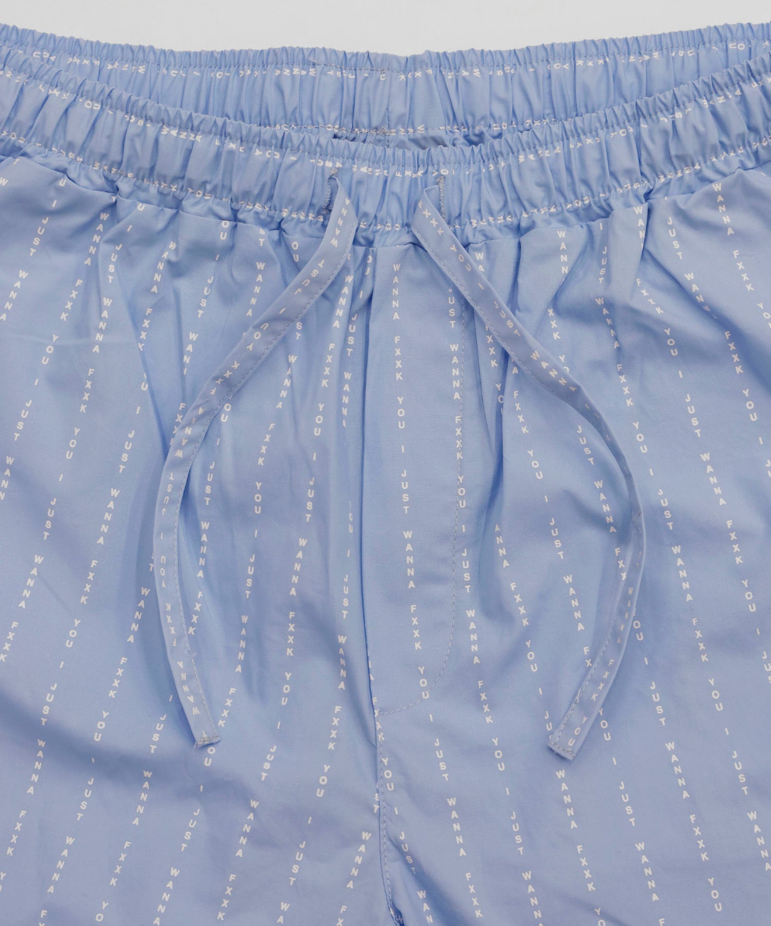メッセージをストライプ柄に見立ててプリントで落とし込みつつ、ワンポイントでアイコンを刺繍でオン。 肌触りの良いコットン素材で着心地も良好。ウエストはゴム紐で調整出来るようになっているのもポイント。 サイズに関して・・・ウエスト(紐で調整可) M / 約76.0 ~ 106.0 L / 約82.0 ~ 116.0 単位:cm ※上下セットでの販売となります。色やサイズの指定は出来ません。予めご了承下さい。 型番:FRG026