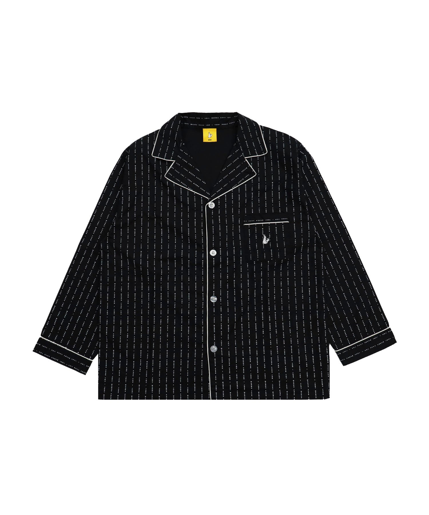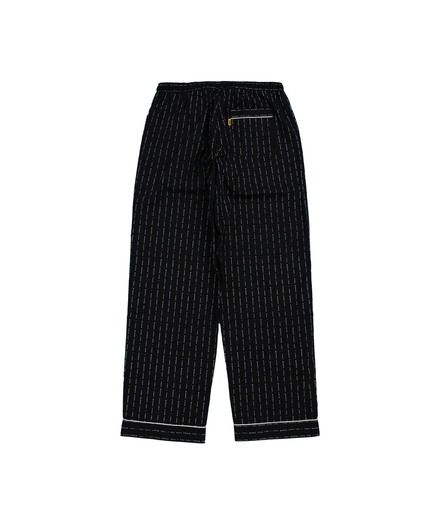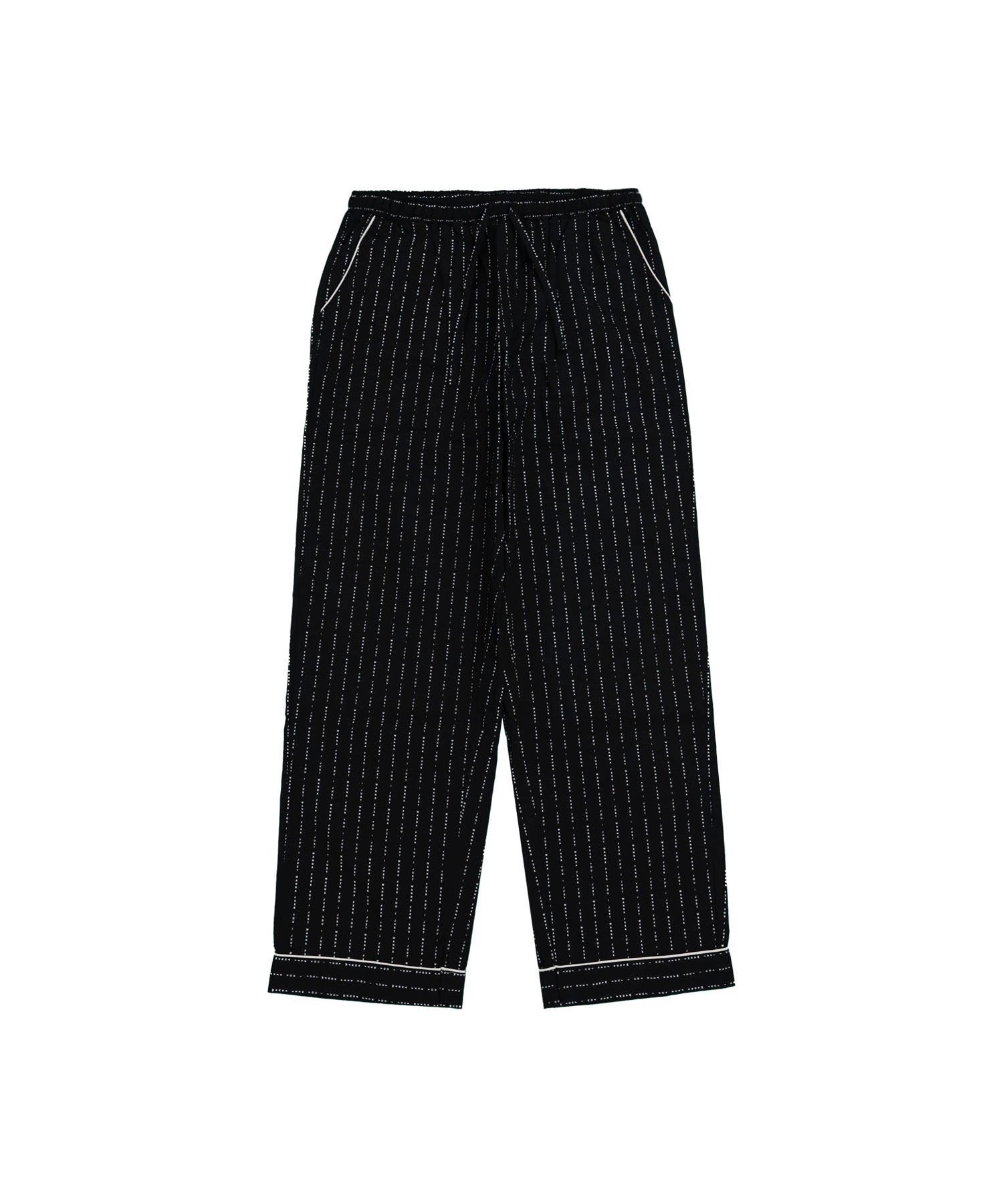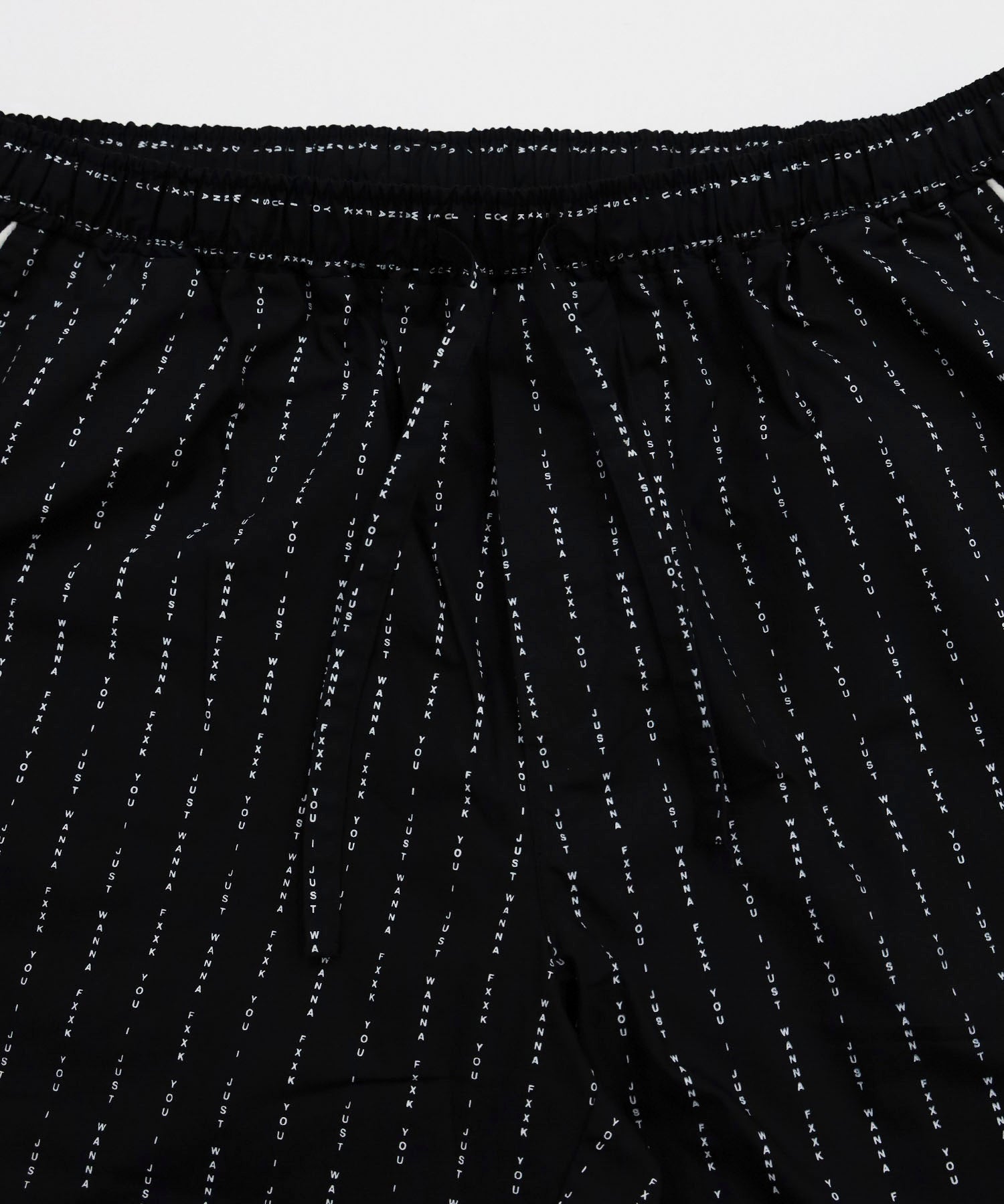 メッセージをストライプ柄に見立ててプリントで落とし込みつつ、ワンポイントでアイコンを刺繍でオン。 肌触りの良いコットン素材で着心地も良好。ウエストはゴム紐で調整出来るようになっているのもポイント。 サイズに関して・・・ウエスト(紐で調整可) M / 約76.0 ~ 106.0 L / 約82.0 ~ 116.0 単位:cm ※上下セットでの販売となります。色やサイズの指定は出来ません。予めご了承下さい。 型番:FRG026