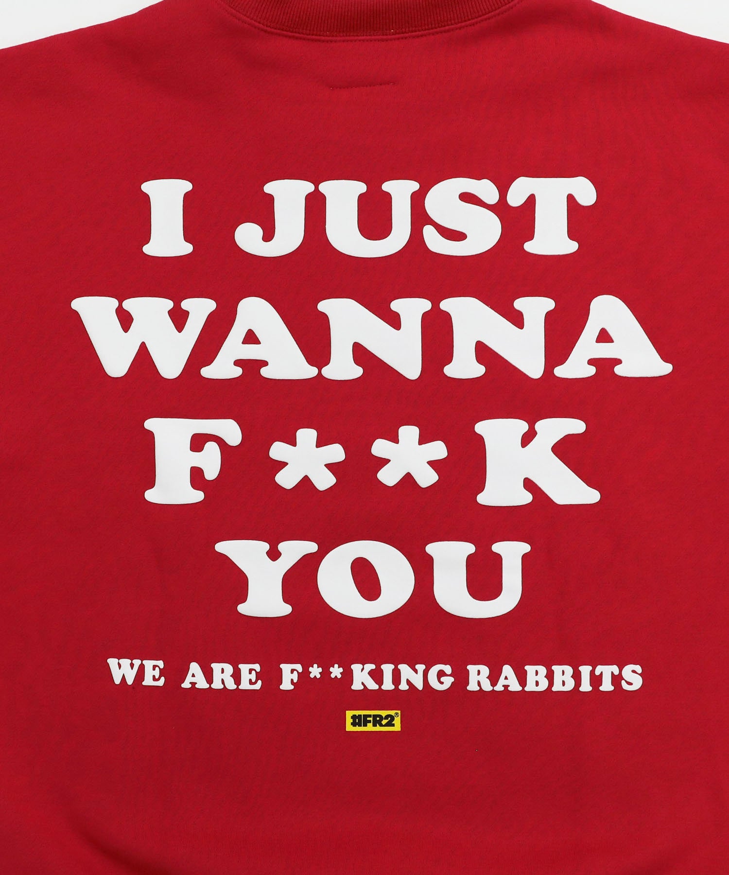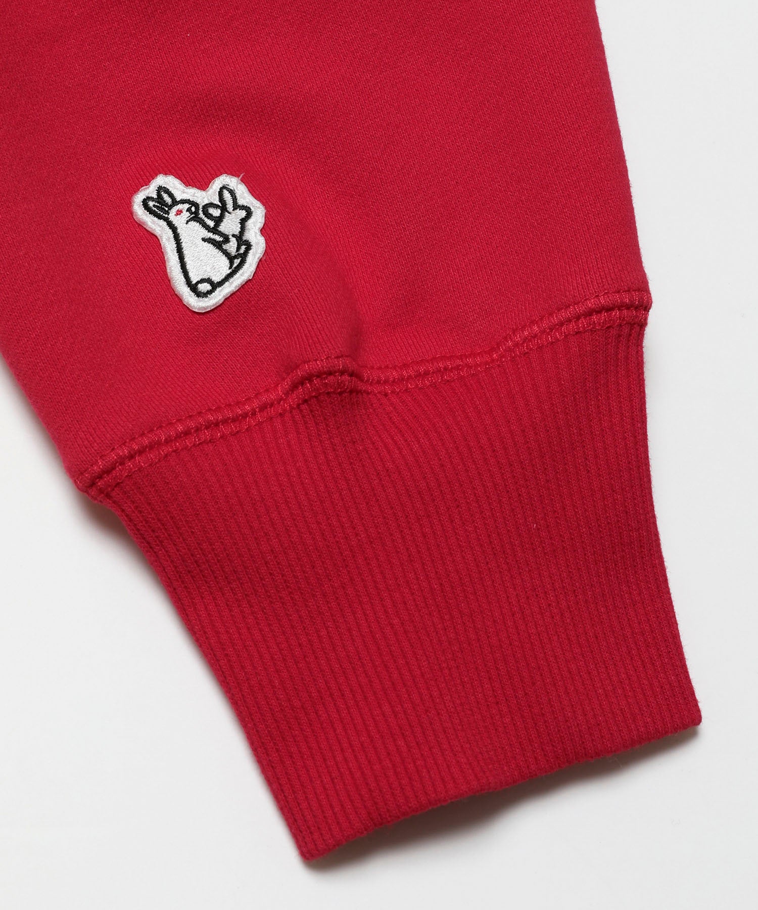 コミカルなグラフィックとメッセージをフロントとバック双方に落とし込んだ一枚。 程良いハリ感と温もりのある起毛素材で着心地も良好。 型番:FRC4039