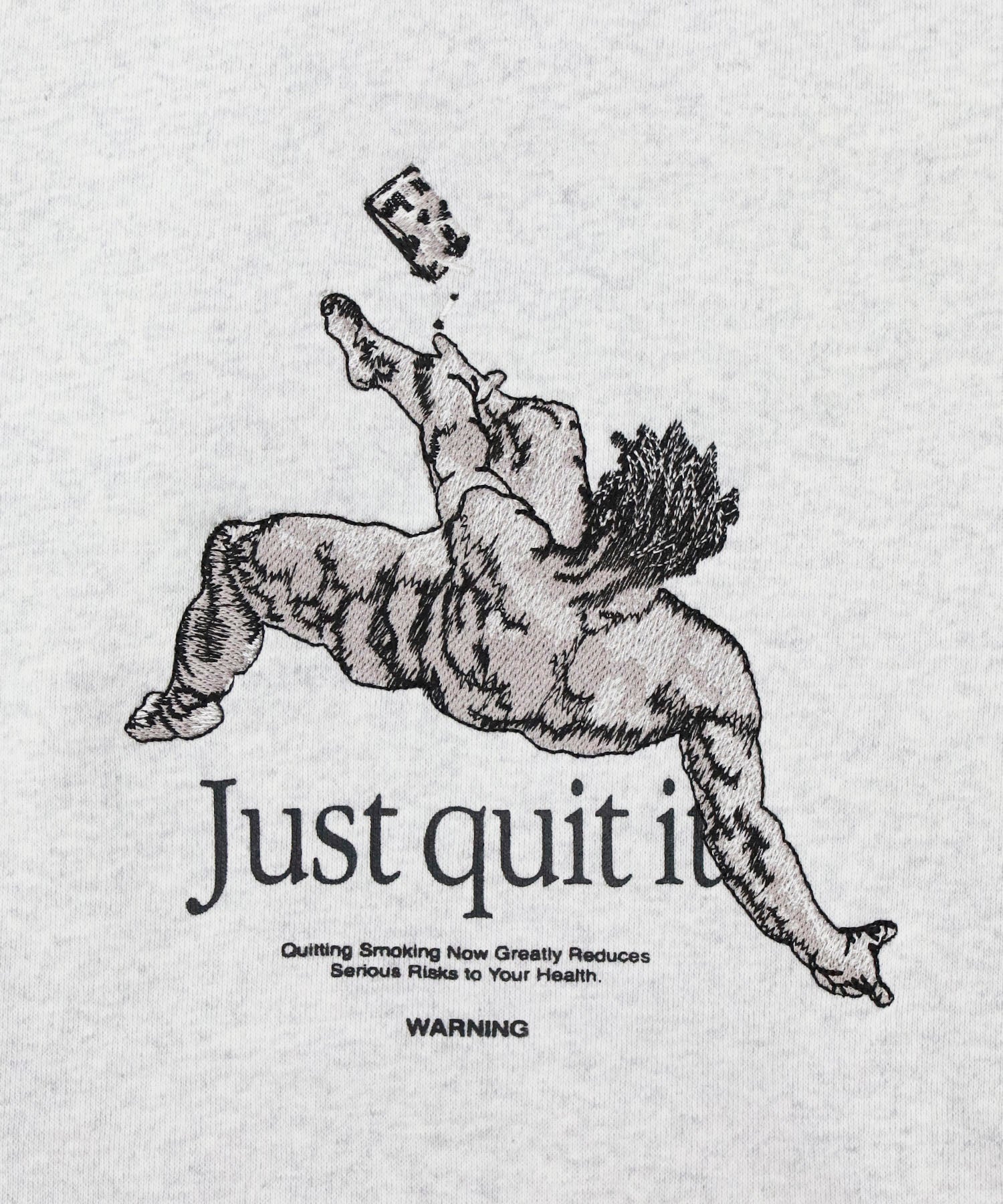 イラストタッチの刺繍とともに喫煙に対してのメッセージを合わせてフロントに落とし込んだパーカー。バックにも大きめにメッセージをオン。 起毛素材で温もりもあり着心地良好。 禁煙に向けた#FR2らしいストレートな主張が目を惹く一枚。 型番:FRC4108