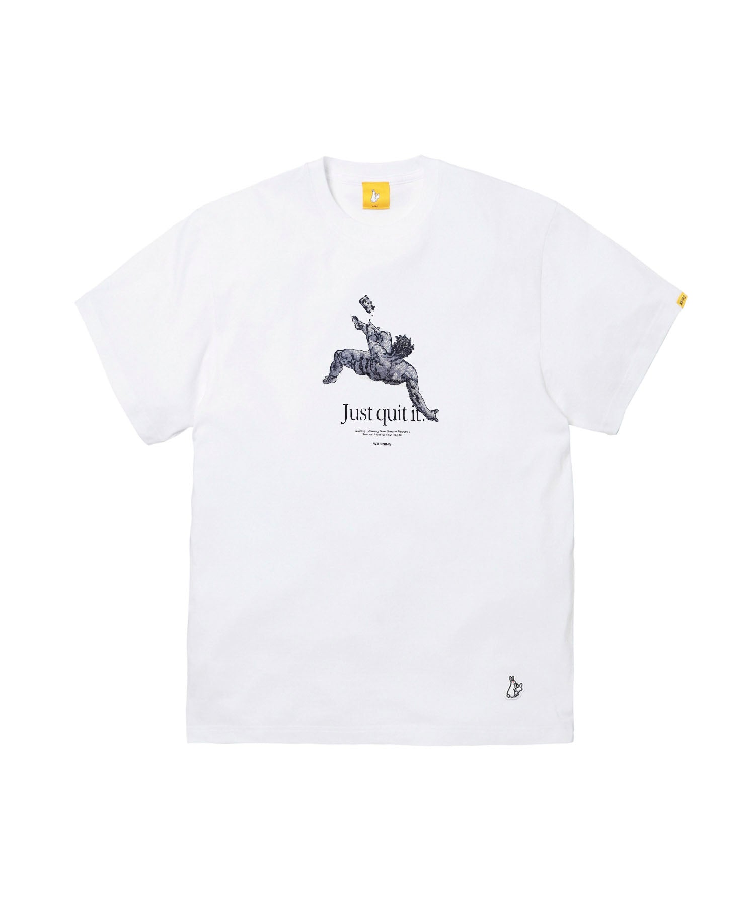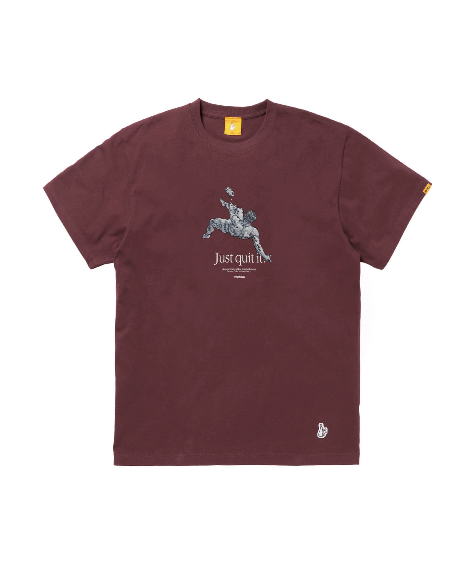 イラストタッチの刺繍とともに喫煙に対してのメッセージを合わせてフロントに落とし込んだTシャツ。バックにも大きめにメッセージをオン。 禁煙に向けた#FR2らしいストレートな主張が目を惹く一枚。 型番:FRC4108