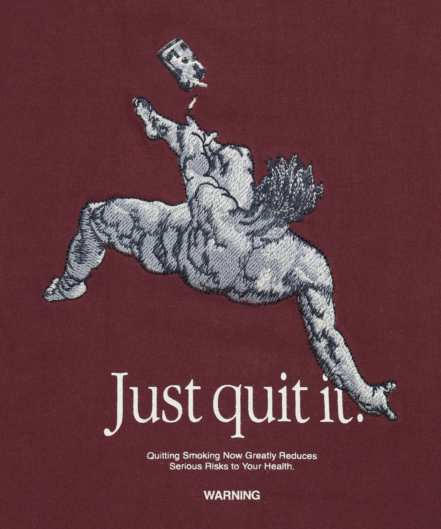 イラストタッチの刺繍とともに喫煙に対してのメッセージを合わせてフロントに落とし込んだTシャツ。バックにも大きめにメッセージをオン。 禁煙に向けた#FR2らしいストレートな主張が目を惹く一枚。 型番:FRC4108