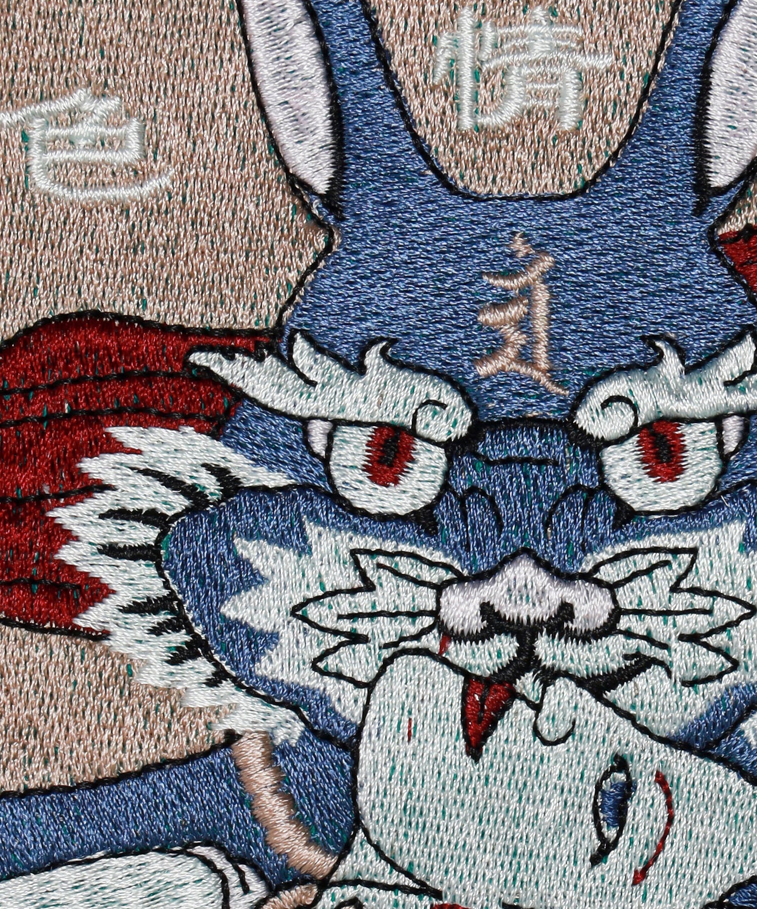 Acid Wash Embroidery Rabbit Ninja T-shirt