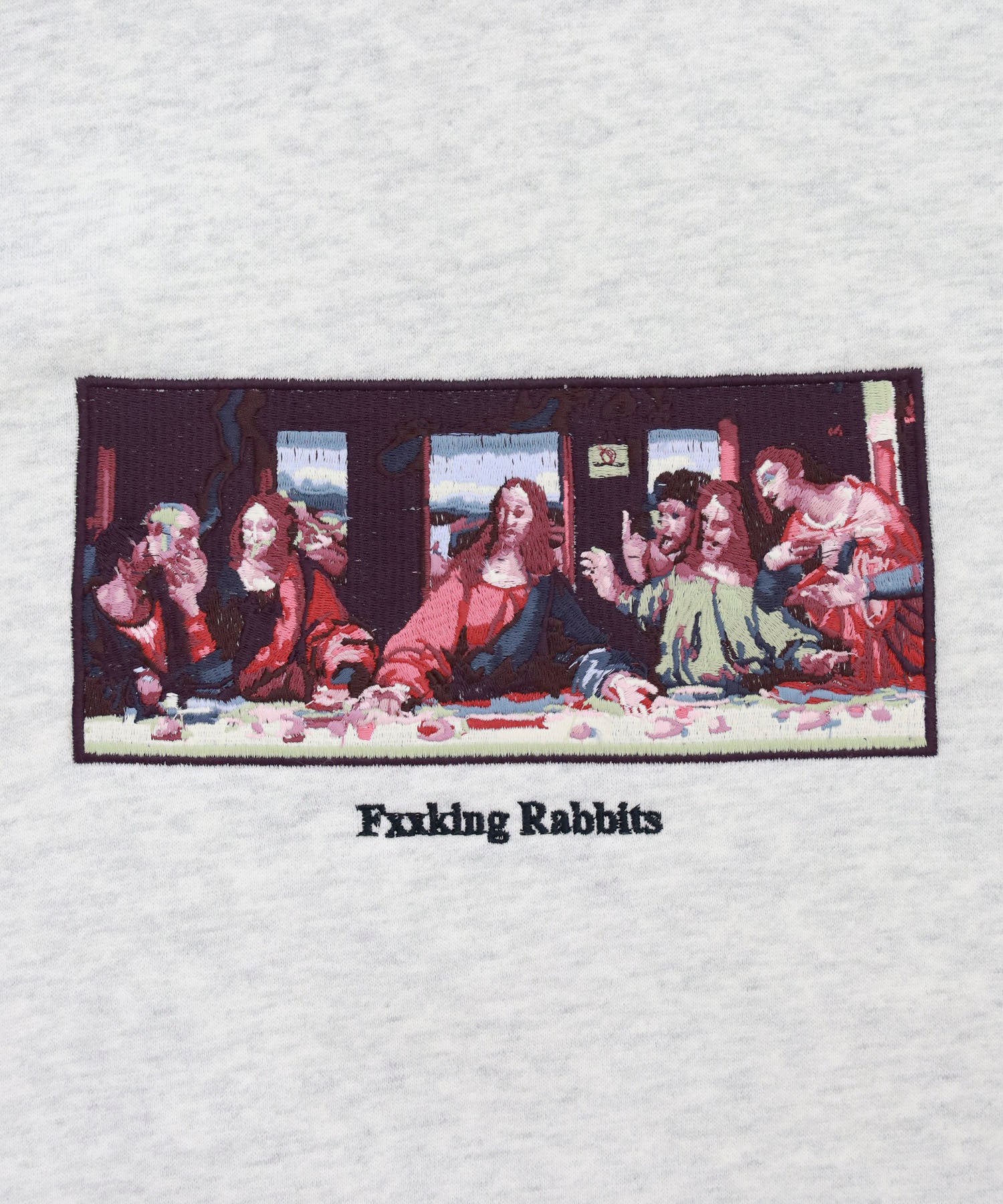 フロントは絵画のグラフィックを刺繍で落とし込みつつ、バックに#FR2らしいメッセージを大きめにプリントでオン。 温もりのある起毛素材で着心地良好な一枚。 型番:FRC4132