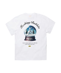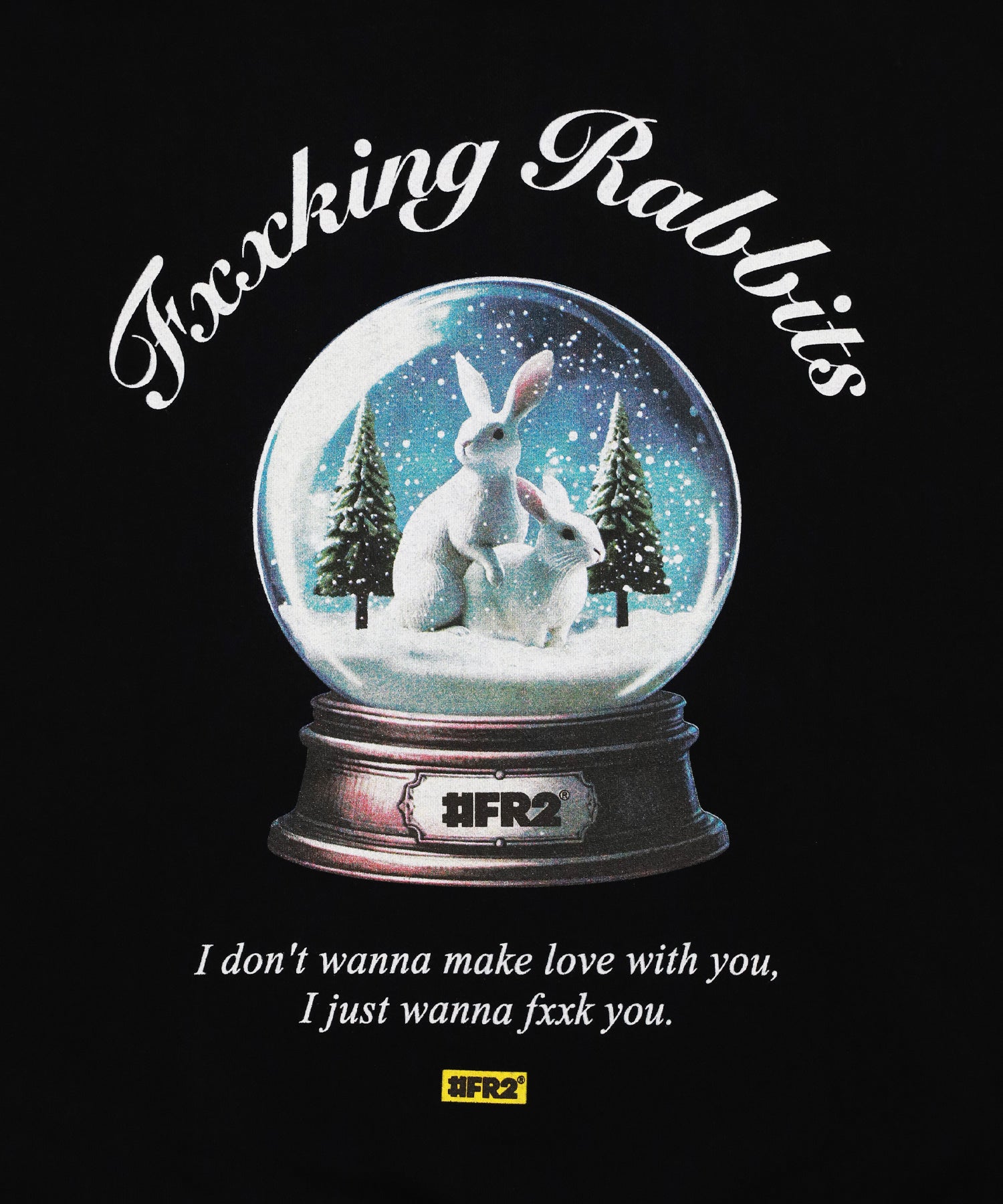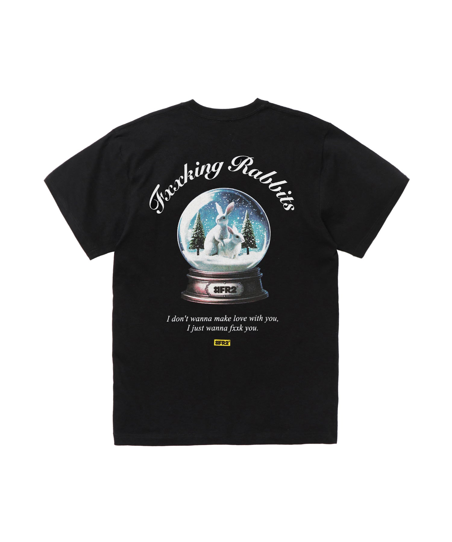 スノードームの中にリアル風なウサギのアイコンにロゴを組み合わせたグラフィックをバックに大きめに落とし込んだTシャツ。フロントは左胸にロゴを刺繍でオン。 季節感のあるデザインで上着を脱いだ際に見えるグラフィックがアクセントにもなります。 型番:FRC4133