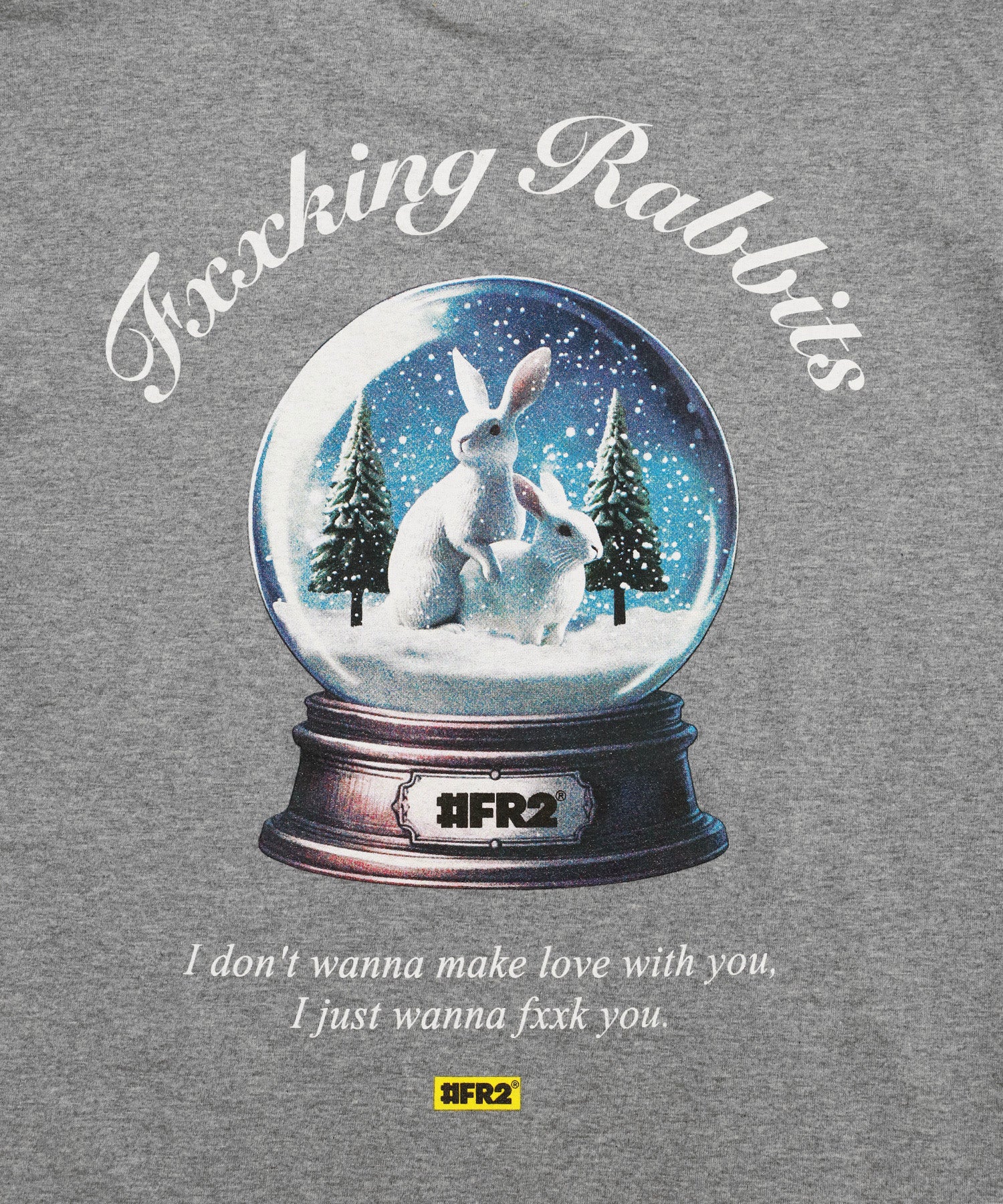 スノードームの中にリアル風なウサギのアイコンにロゴを組み合わせたグラフィックをバックに大きめに落とし込んだTシャツ。フロントは左胸にロゴを刺繍でオン。 季節感のあるデザインで上着を脱いだ際に見えるグラフィックがアクセントにもなります。 型番:FRC4133