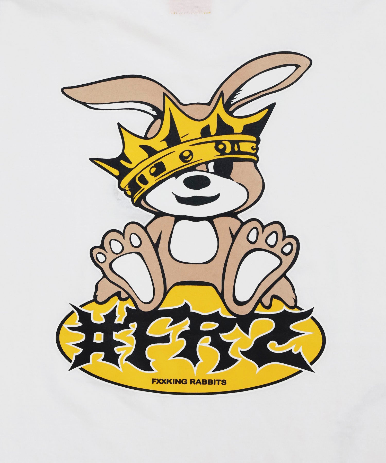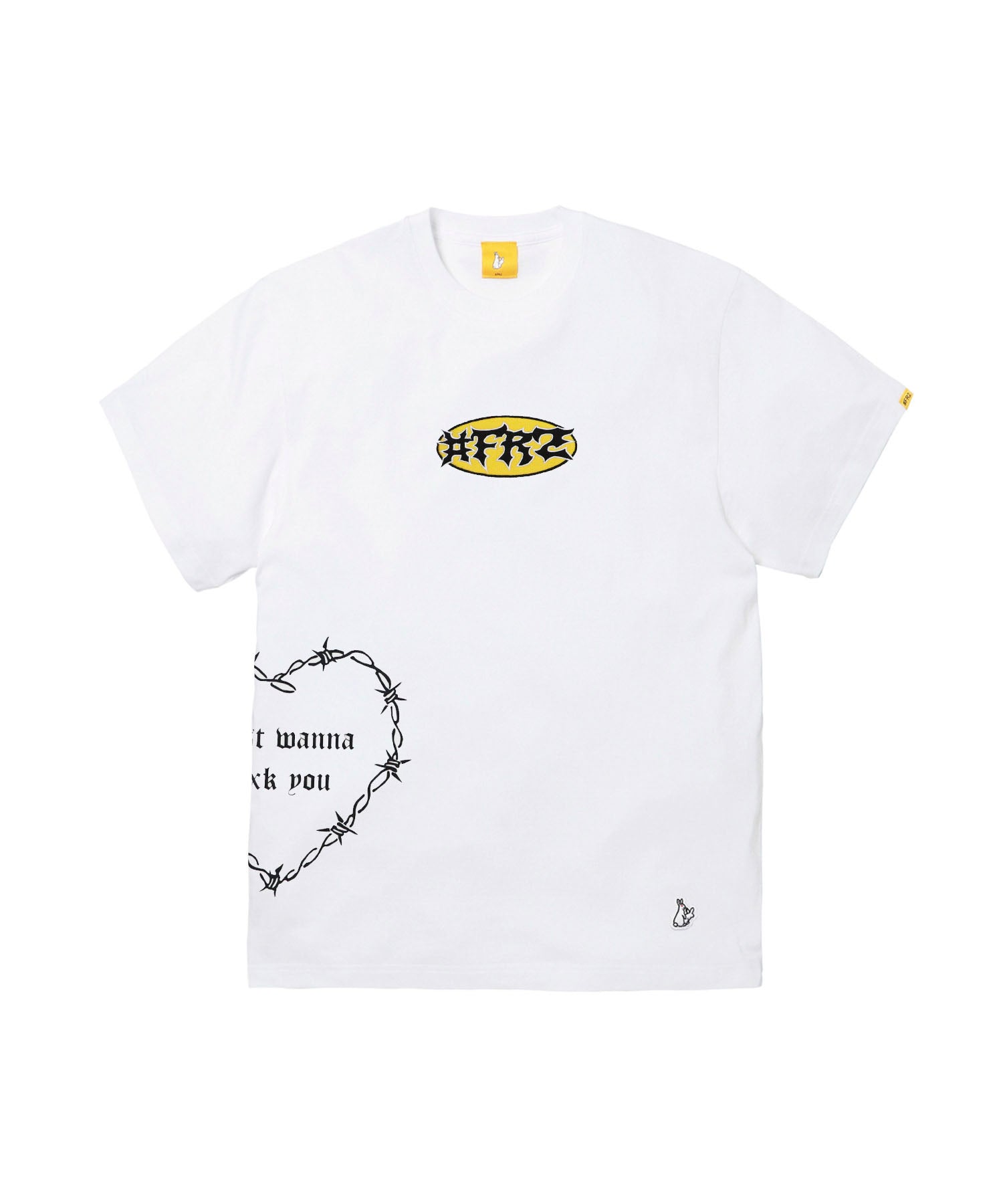 ウサギのアイコンを縫いぐるみに見立てたグラフィックをバックにプリントしたTシャツ。フロントにはロゴを刺繍しつつ、右のウエスト部分にハートとメッセージを落とし込むことでデザイン性もありつつ、しっかりと存在感もある仕上がり。 型番:FRC4134