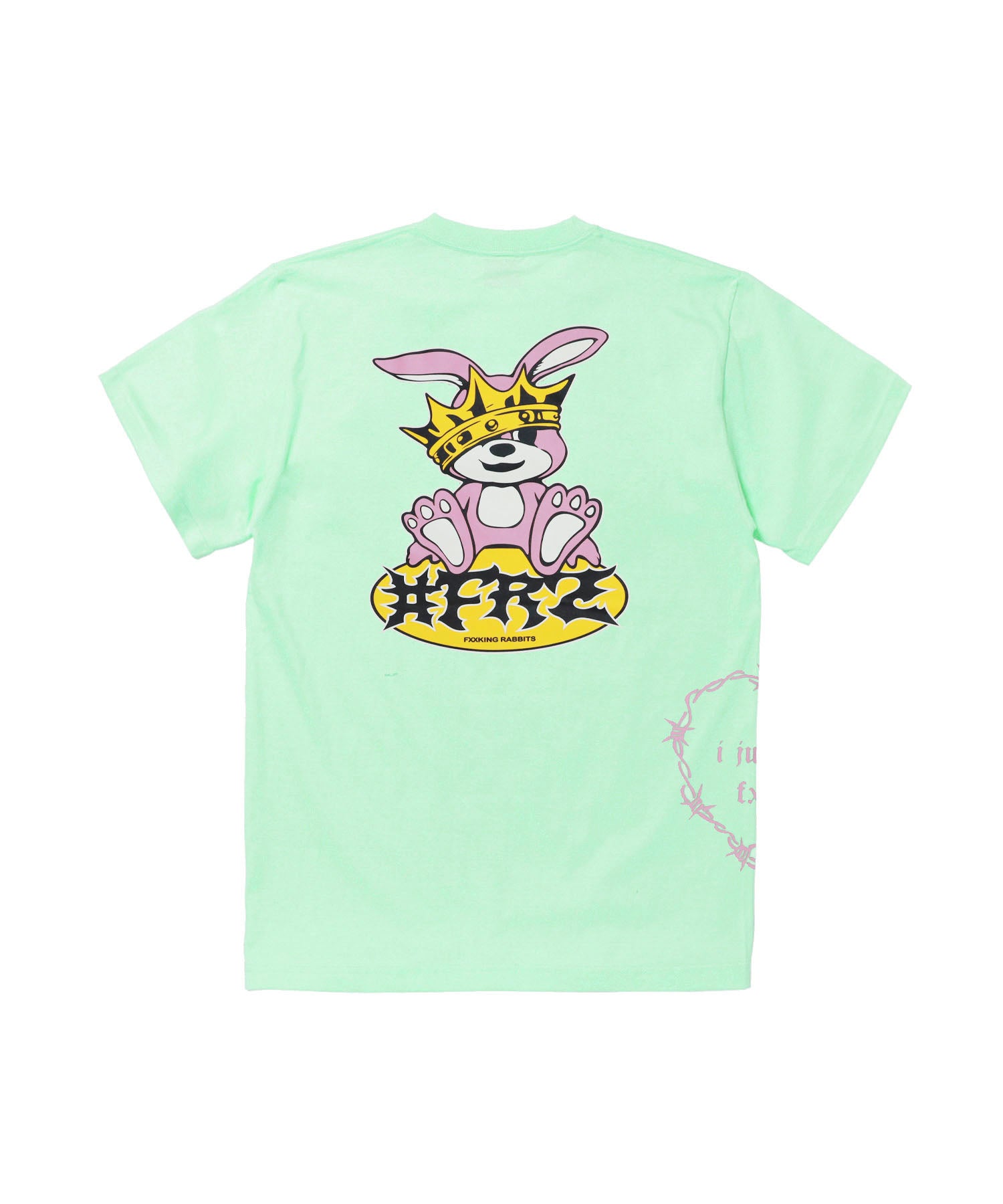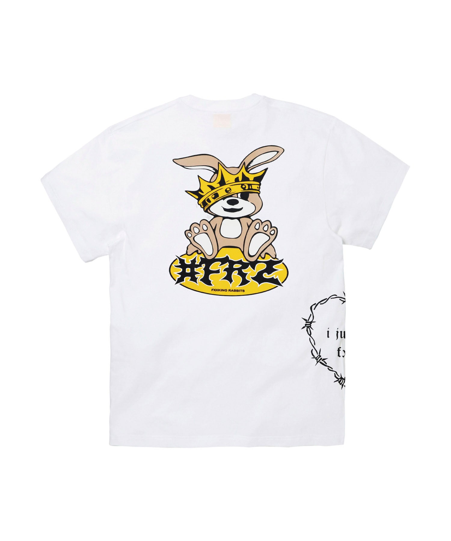 ウサギのアイコンを縫いぐるみに見立てたグラフィックをバックにプリントしたTシャツ。フロントにはロゴを刺繍しつつ、右のウエスト部分にハートとメッセージを落とし込むことでデザイン性もありつつ、しっかりと存在感もある仕上がり。 型番:FRC4134