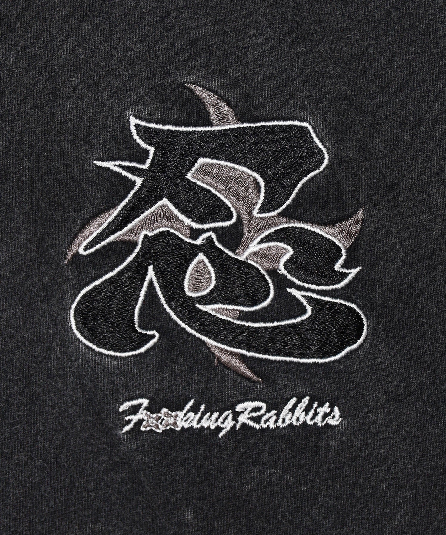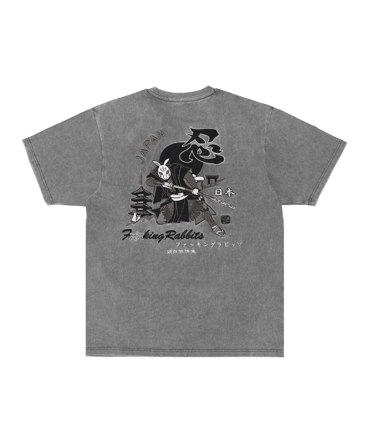 Acid Wash Embroidery Rabbit Ninja T-shirt