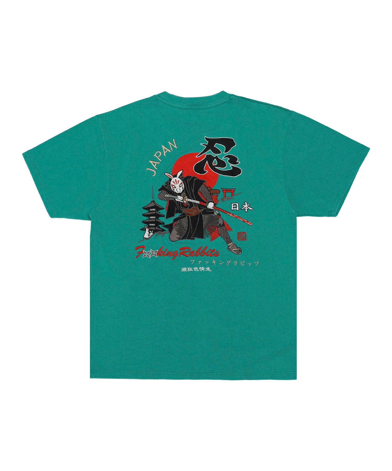 ウサギのお面をつけた忍者をメインに日本の夜の風景やアイコンをバックに刺繍で落とし込んだTシャツ。フロントは「忍」の文字とロゴをそれぞれ刺繍で表現。 存在感もありつつキャッチ‐な仕上がり。 型番:FRC4137