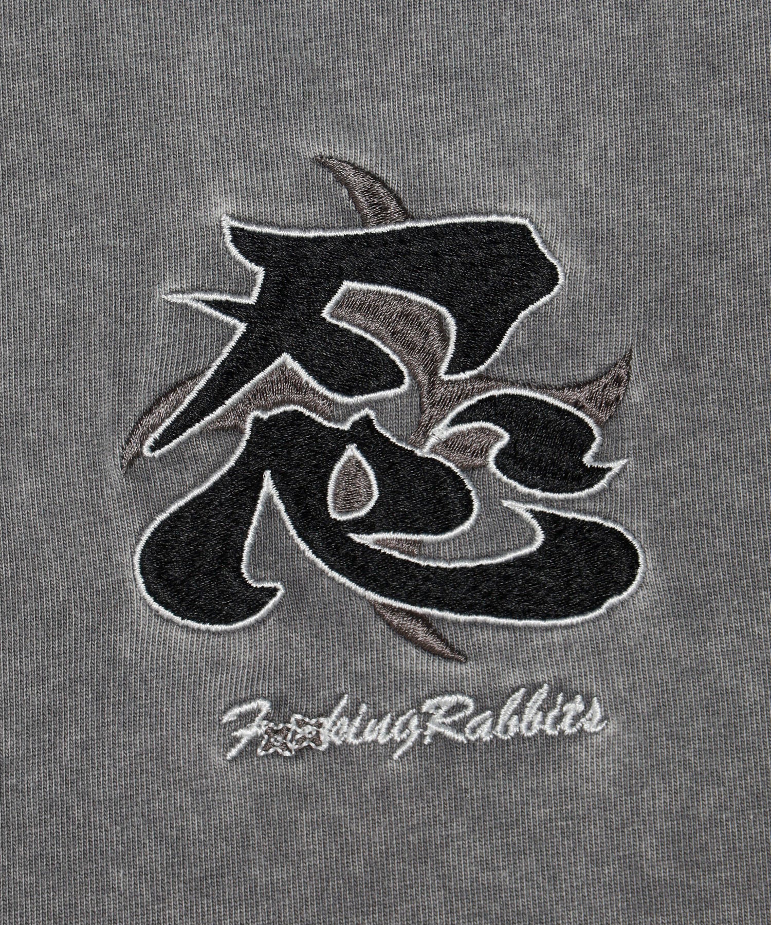 Acid Wash Embroidery Rabbit Ninja T-shirt