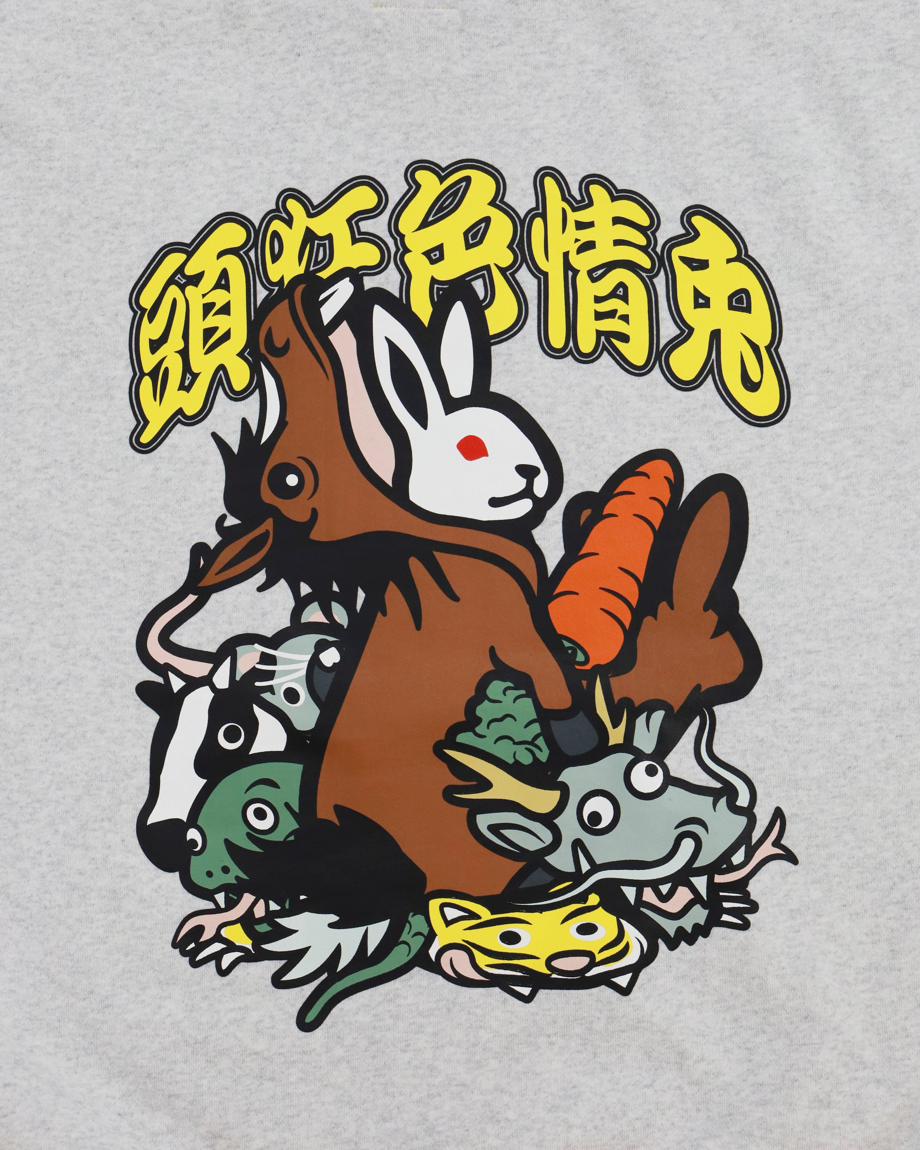 2026年午年、最初は今年もこのデザイン。 フロントはロゴを刺繍で入れつつバックには干支を取り入れたお正月ならではのアイコンデザインが目を惹くアイコンが落とし込まれた一枚。普段使いでも活躍出来るようにボディはブラックに加えアッシュグレーをチョイス。 素材はいつもと同様にしっかりとしたハリのある裏起毛素材で温もりのある仕上がりです。 型番:FRC4216