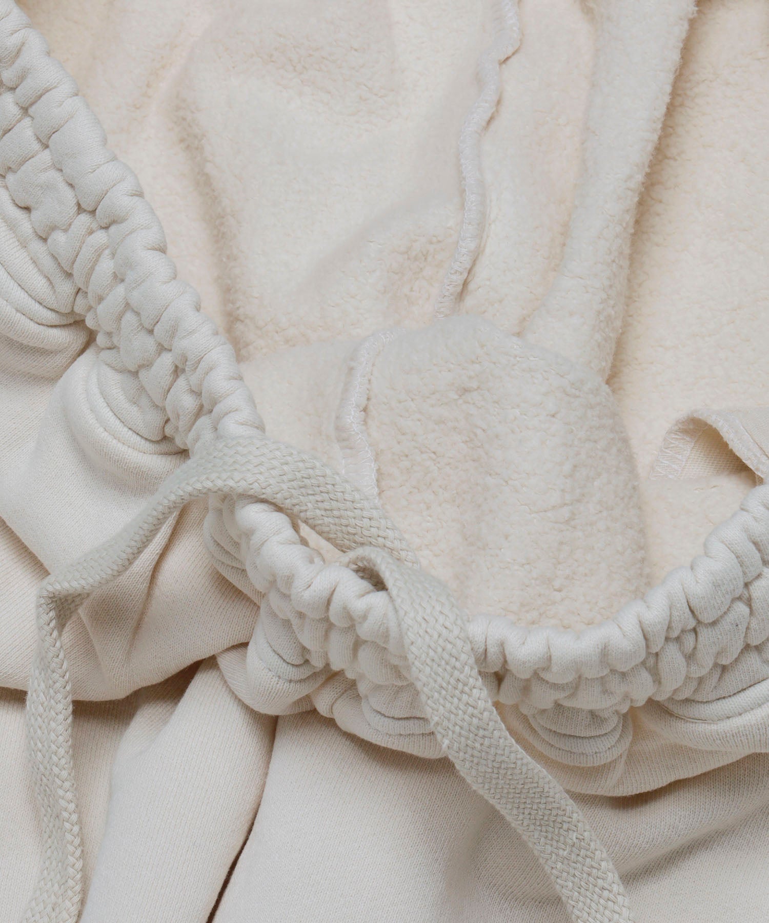 50%オーガニックコットン、50%サステナブルコットン、13.2オンスのしっかりしたボディで仕立てられたパンツ。右サイドに縦にボックスロゴをプリントしつつ、左のウエストポケットには今回新たに登場したアイコンロゴをボディと同色の刺繍で落とし込み、ファッション性もありつつさり気ない部分にも拘った仕上がり。 柔らかな起毛素材で温もりもありつつ、ウエストはゴム紐でサイズも調整でき履き心地良好。 同デザインのパーカーとセットアップでも楽しめます。 生産の特性上、サイズの個体差(記載より前後3~5cm程度)や縫製の歪み、各部糸処理がなされてないように見受けられる(ホツレ、糸飛び、糸が切れている等)が見られる場合がございます。あくまで製品の特製となります為、不良ではありませんので返品交換、サイズ交換等の対応はお受けすることが出来ません。予めご了承いただいたうえでご購入いただきますようお願い致します。 また、乾燥機をご使用いただくと縮む場合がございます。返品交換等の対応はお受けすることが出来ません。予めご了承下さい。 サイズに関して・・・ウエスト(紐で調整可) M:約68.0 ~ 98.0 L:約78.0 ~ 100.0 XL:約80.0 ~ 107.0 ※単位:cm 型番:FRP405