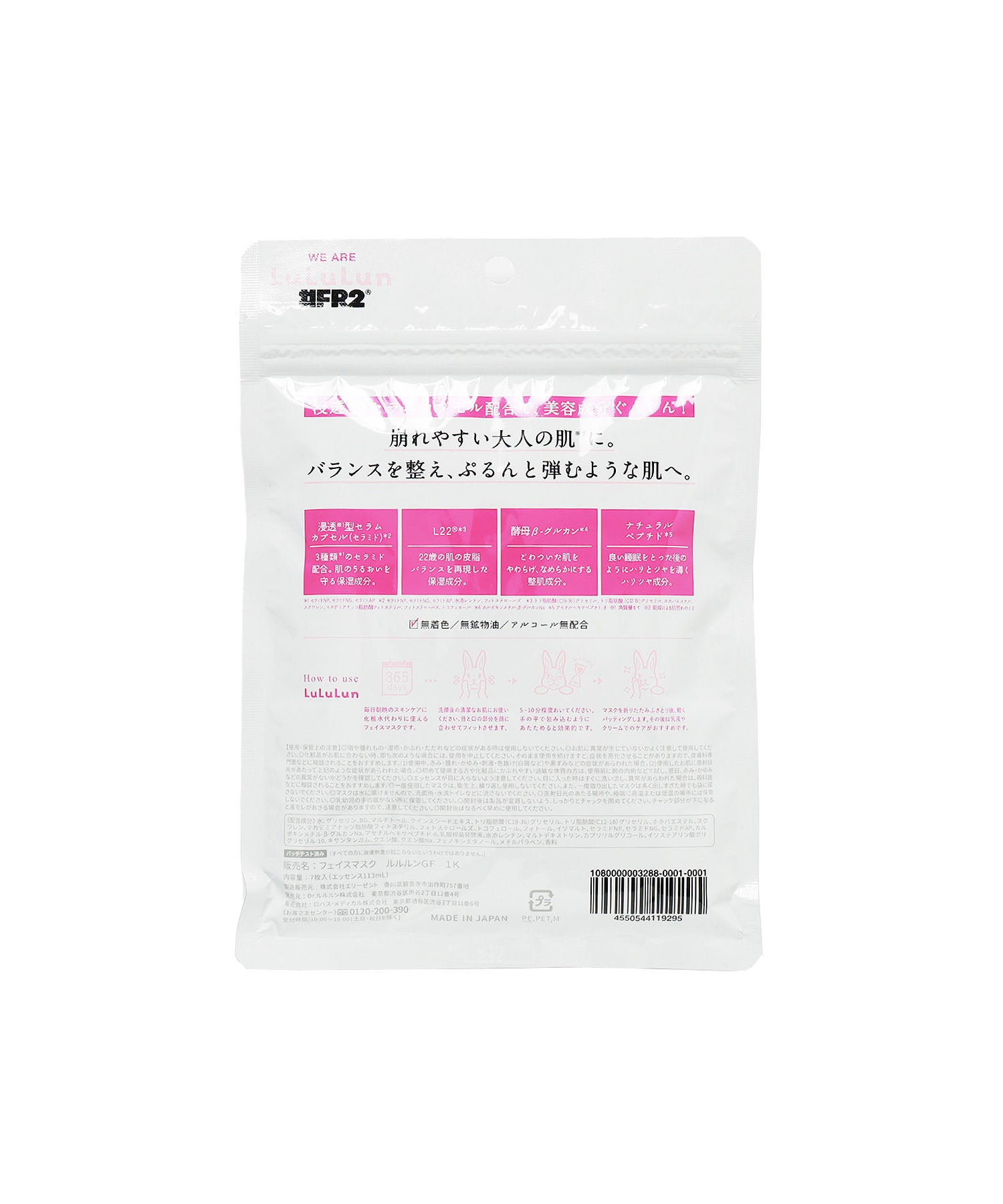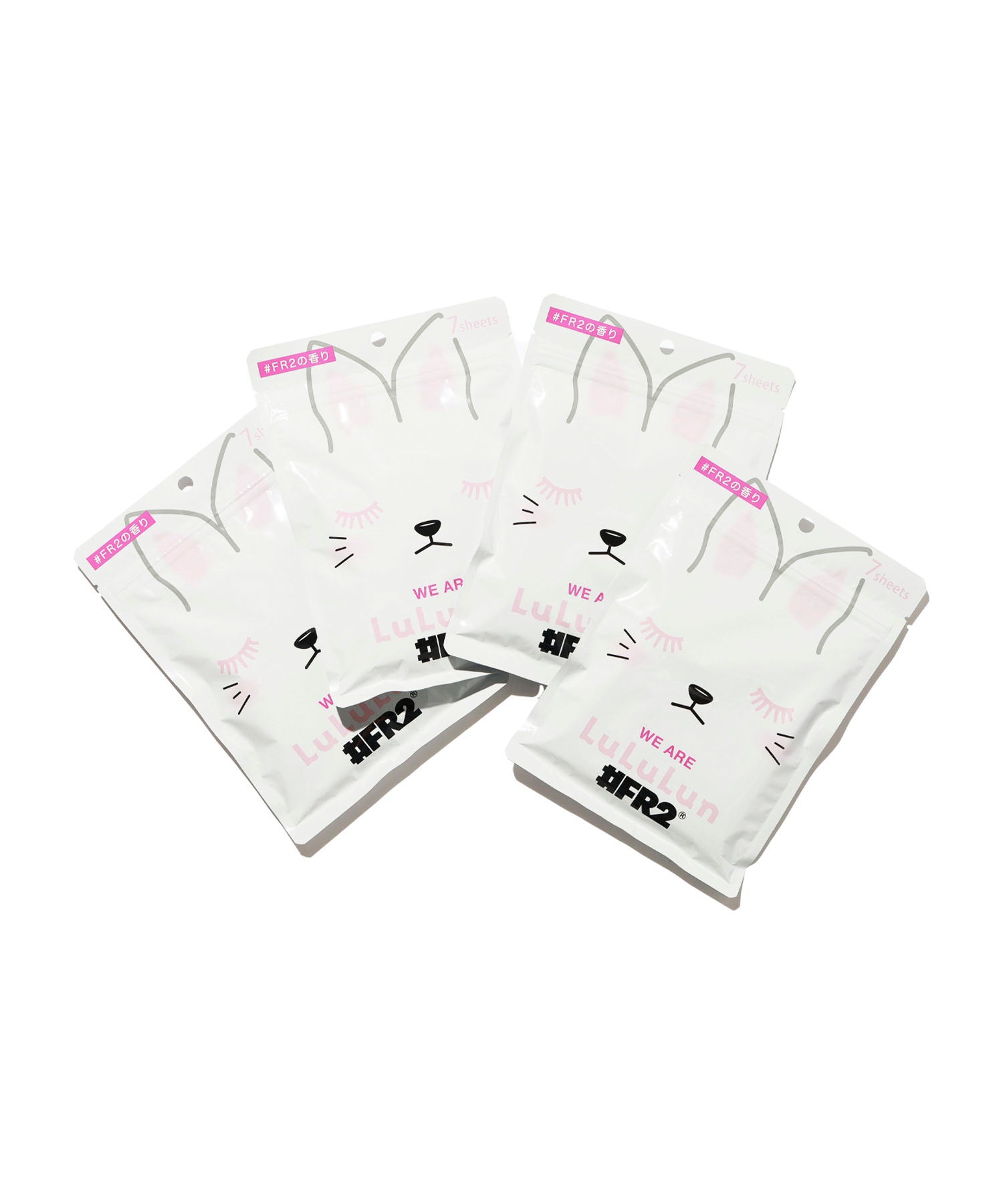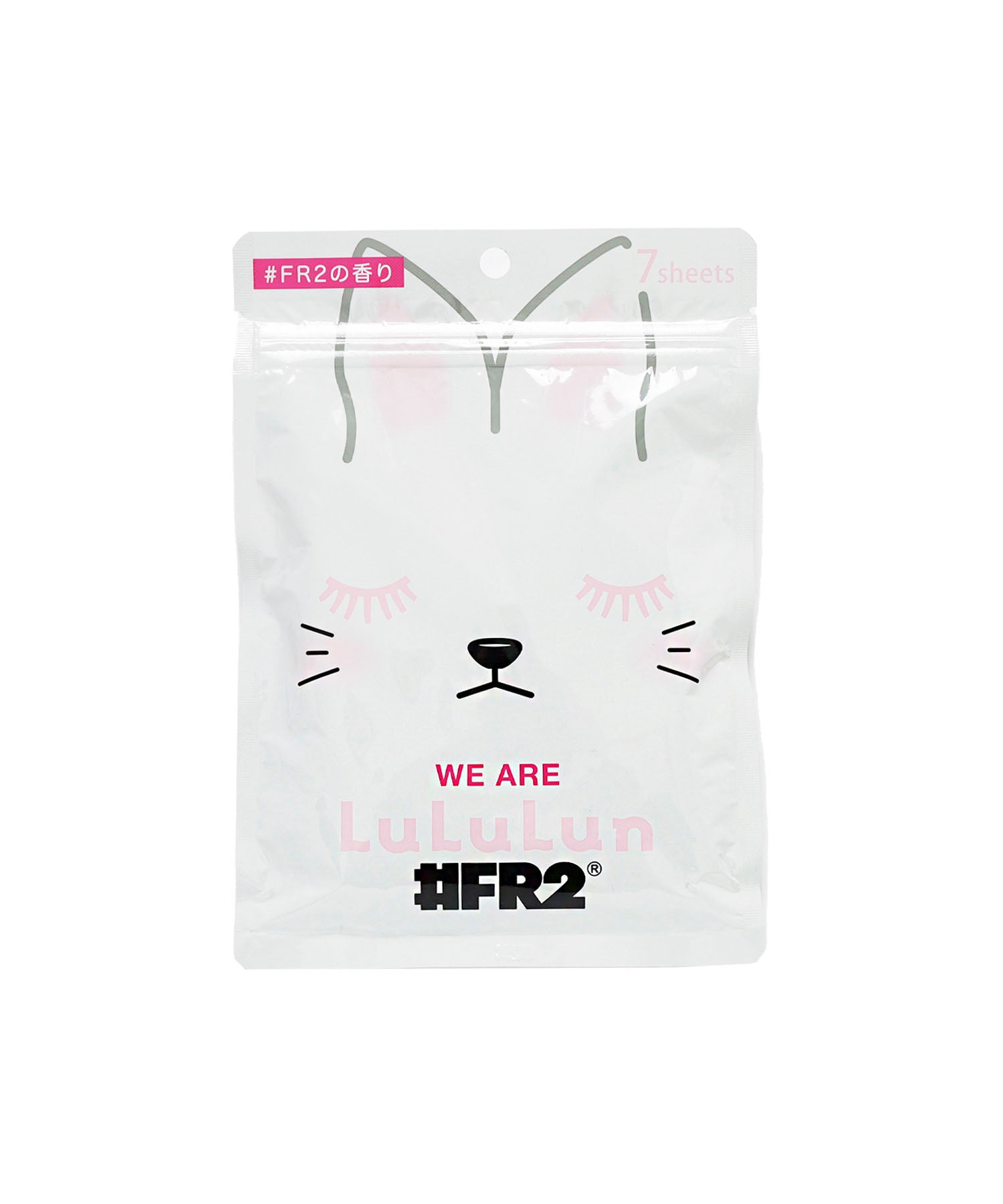 #FR2のアイコンでもあるウサギをモチーフにフェイスパックのパッケージはもちろん、香りも#FR2仕様。朝のお出かけ前のひと時や夜の休息タイムにもピッタリで、パック本体はLuLuLunの中でもロングセラーの「ルルルン GF」なので使ったあとの効果もばっちり。肌に触れるからこそ