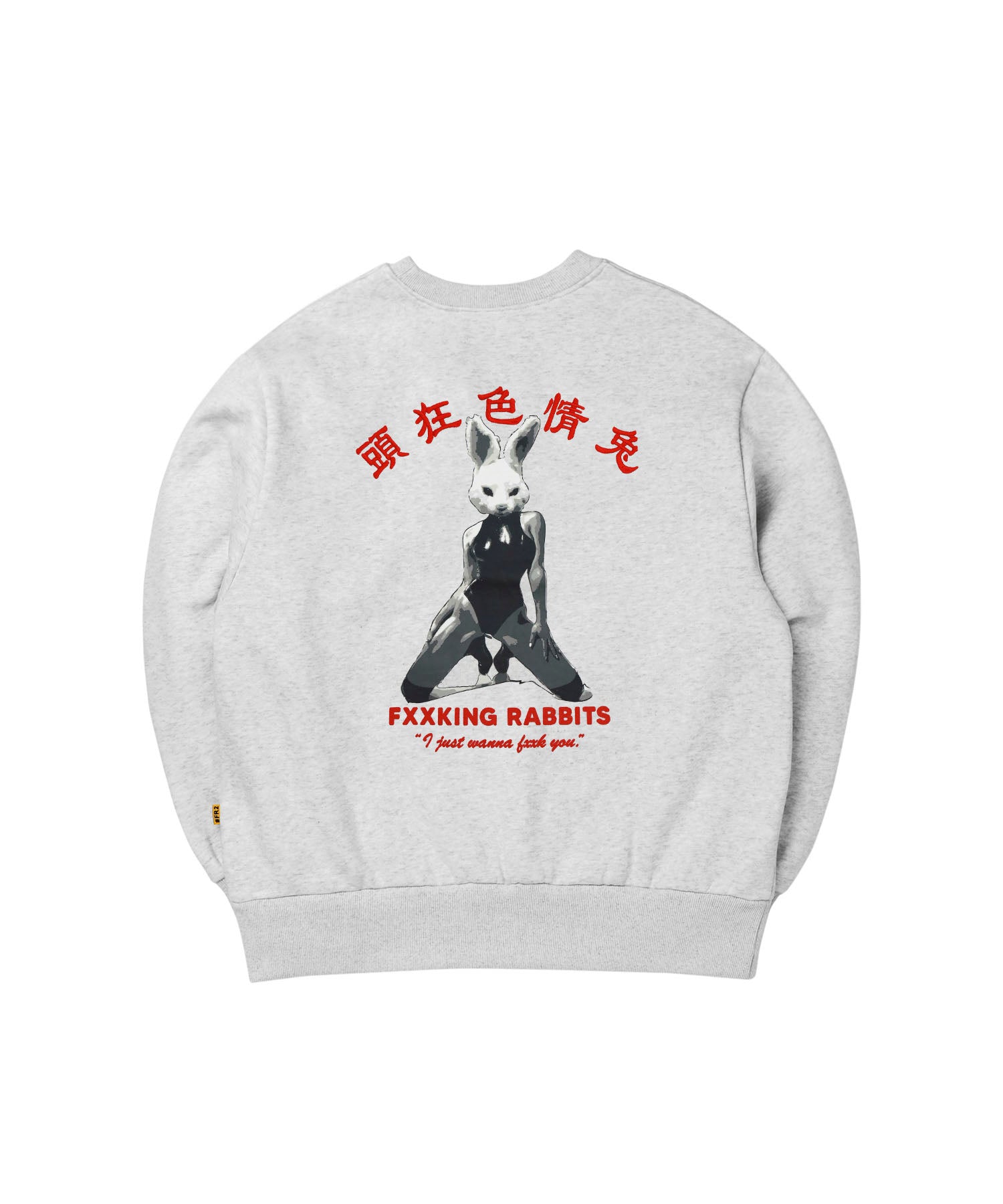 バニーガールに扮したフォトグラフィックをバックに落とし込んだ一枚。漢字のロゴやフロントはワンポイントで左胸に刺繍で表現。 柔らかく着心地の良い温もりのある起毛素材でこれから一枚で着てもインナーでも活躍出来るアイテム。 型番:FRC4236