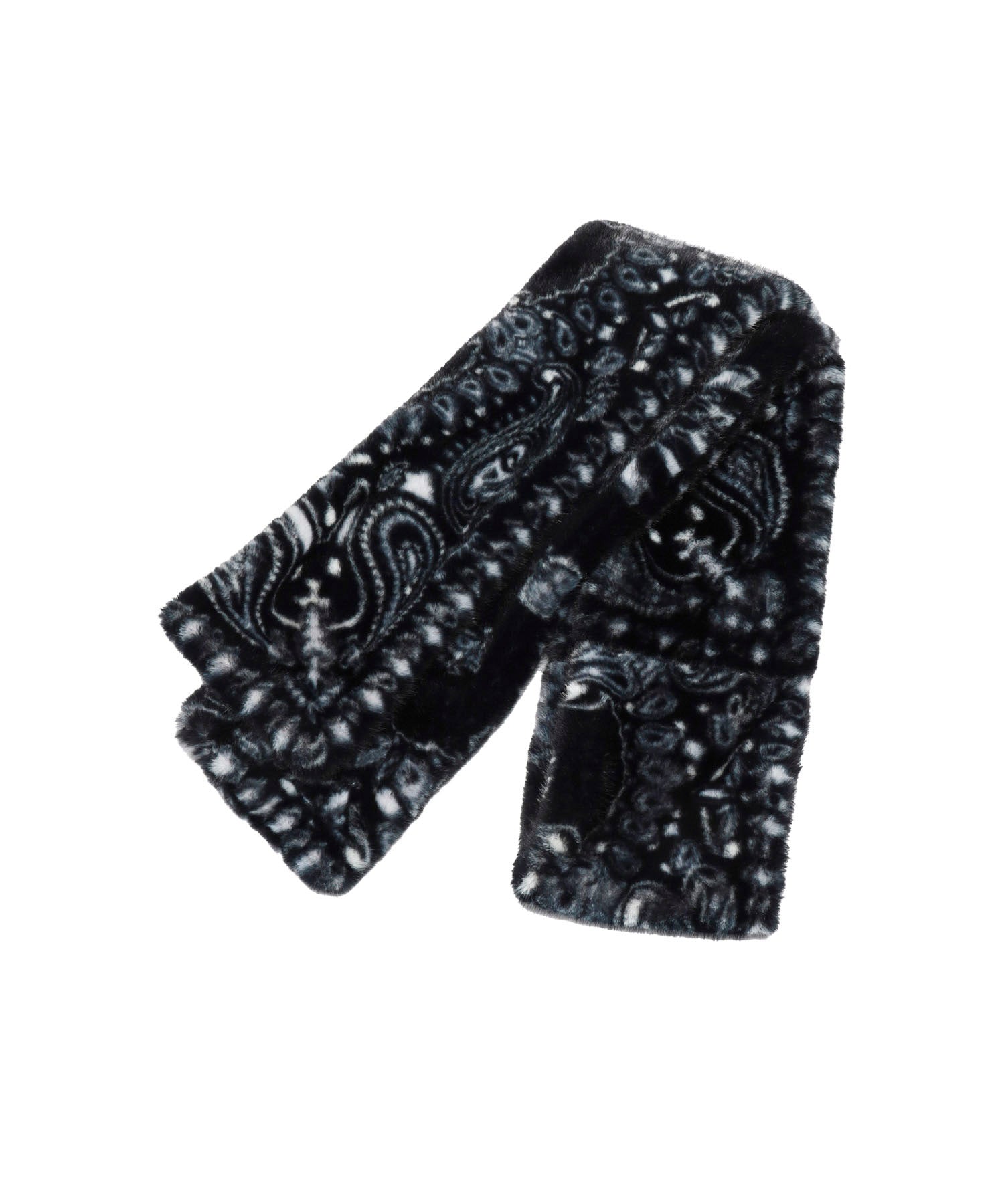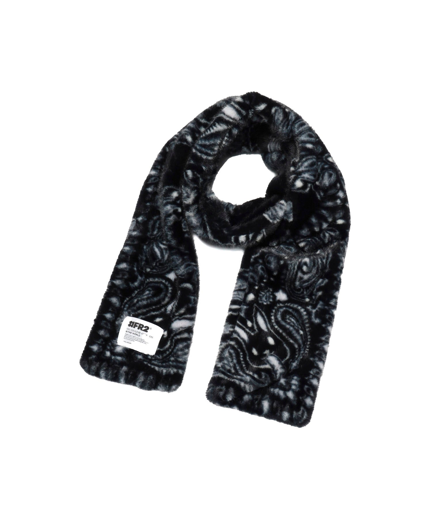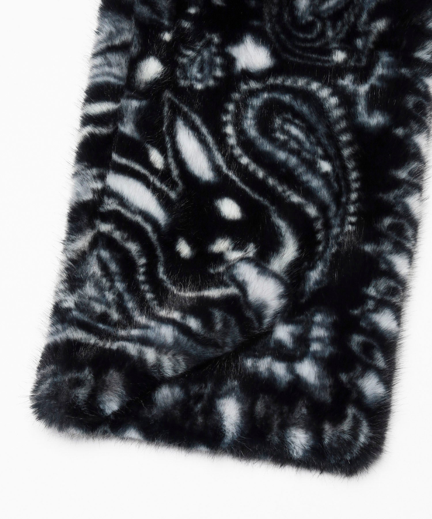ブラックをベースにオリジナルのペイズリー柄を落とし込んだマフラー。長めにの設定で巻き方をアレンジして楽しめつつ、程良い毛足の長さで柔らかさもありながら滑らかで肌触りが良いエコファーを使用し、ファッション性もあるのでコーディネートのプラスワンとしても活躍出来るアイテム。 型番:FRA1988