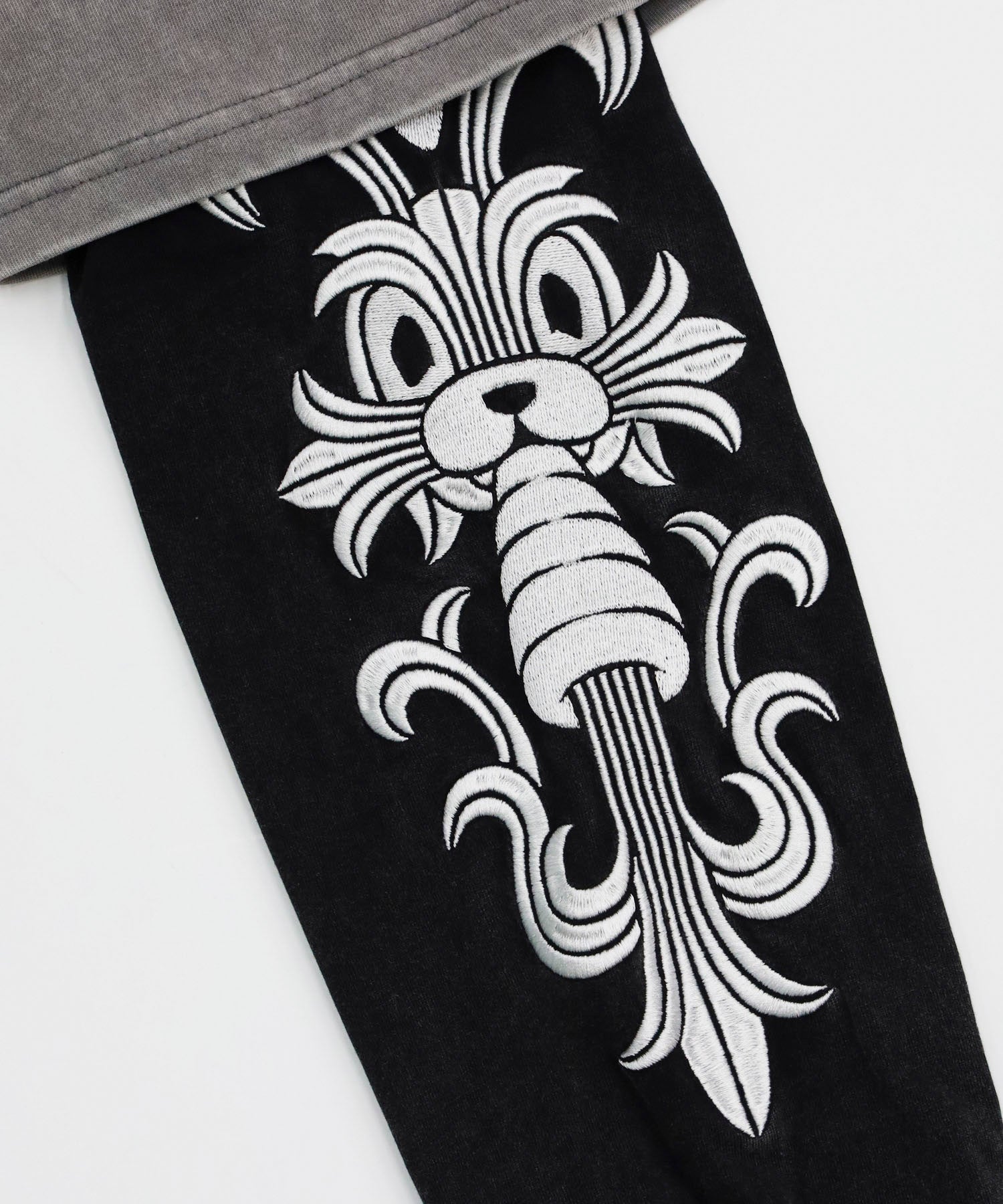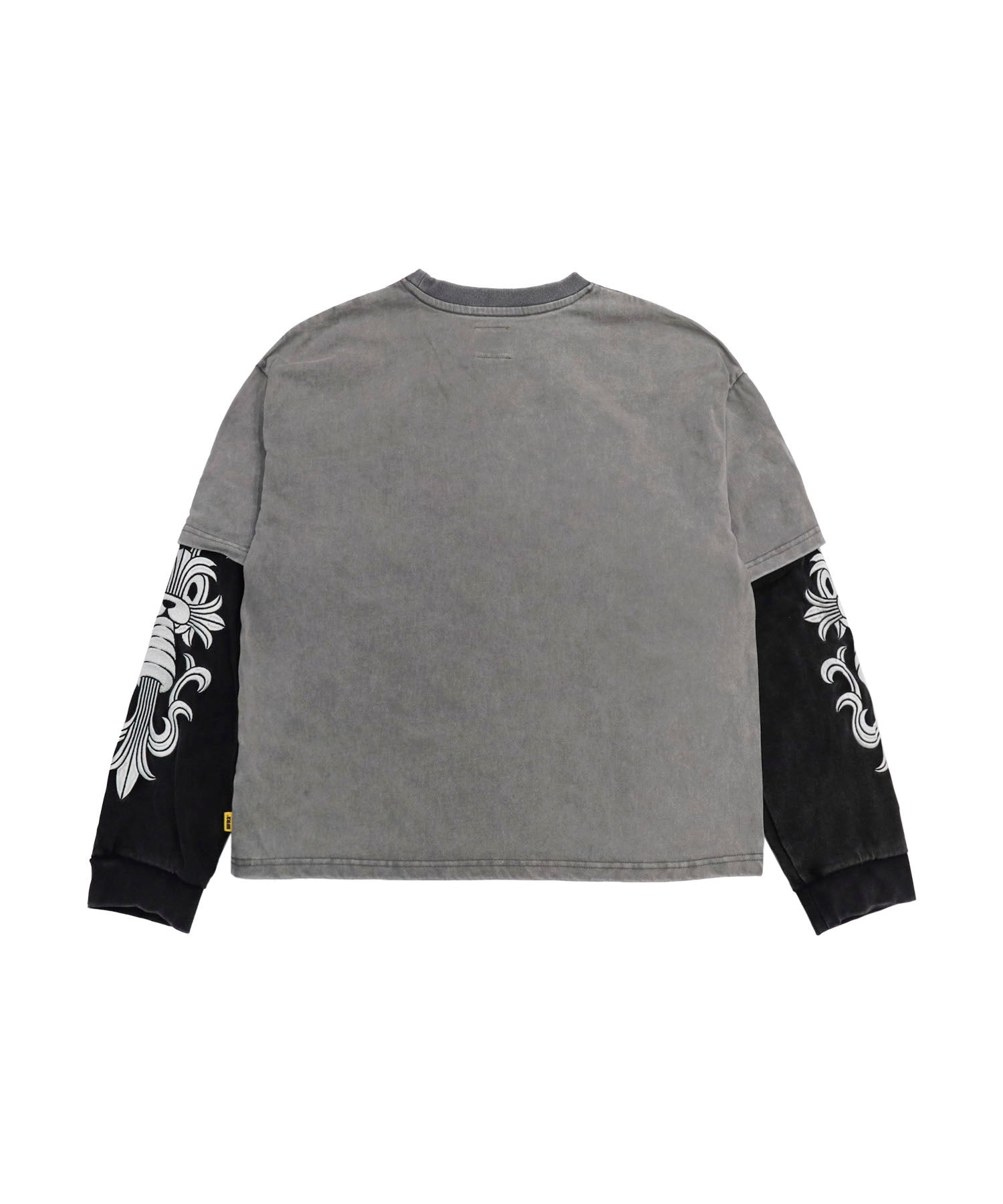 両袖にウサギを加えたアイコンを刺繍で表現した一枚。半袖と長袖のTシャツをレイヤードしたかのようなデザインでになっているのもポイント。 古着のような風合いもあり、ロングシーズン着回し力も高いアイテム。 型番:FRC4265