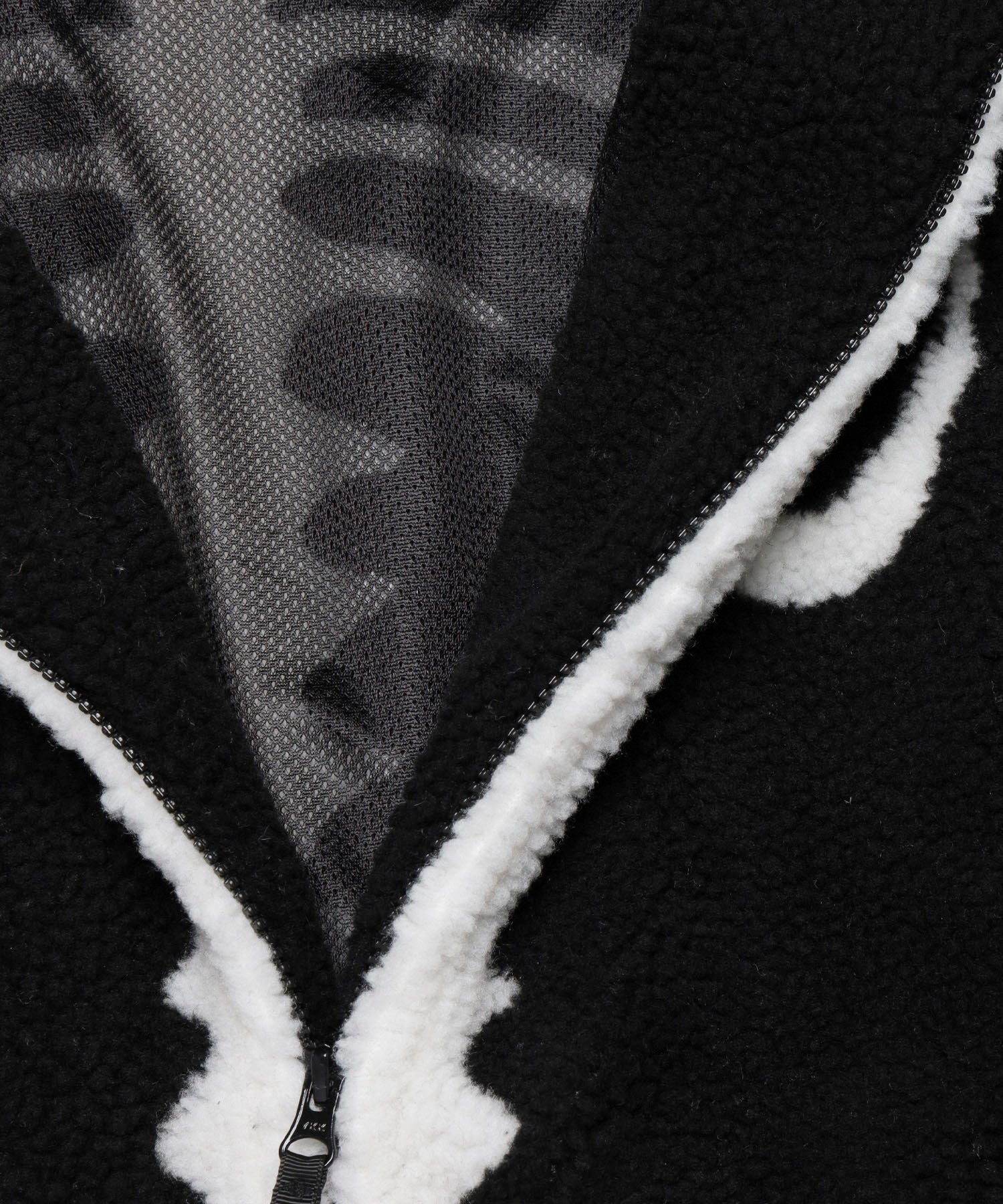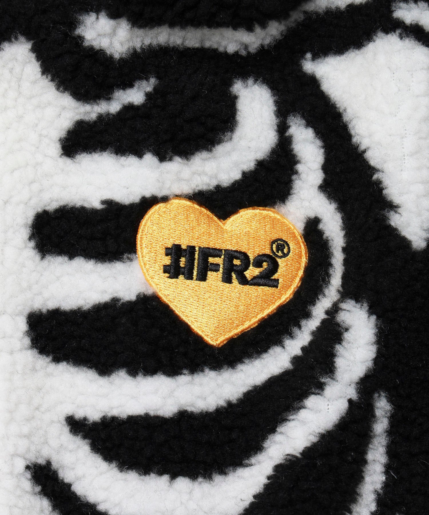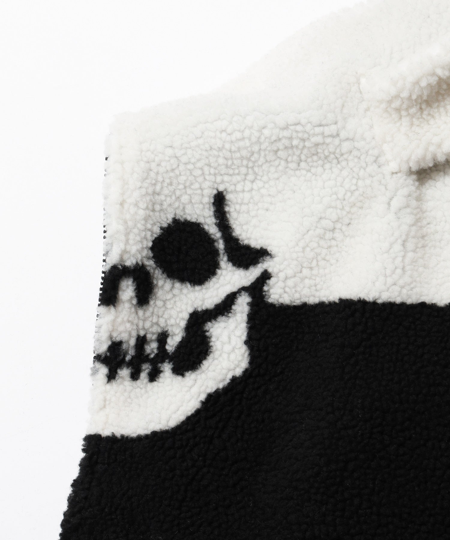 温もりのあるボアフリース仕立てのジップブルゾン。 フードはうさ耳の形状で、さらにフード部分までジップを取り付けることで全閉した際にスケルトンのウサギのようになっていたり等に加え、左胸にはハートの中にロゴを刺繍したり遊び心のある仕上がり。 ホワイトとブラックのモノトーンの配色ながらしっかりと目を惹く一着。 同素材・同デザインのパンツとセットアップでも楽しめます。 型番:FRC4266