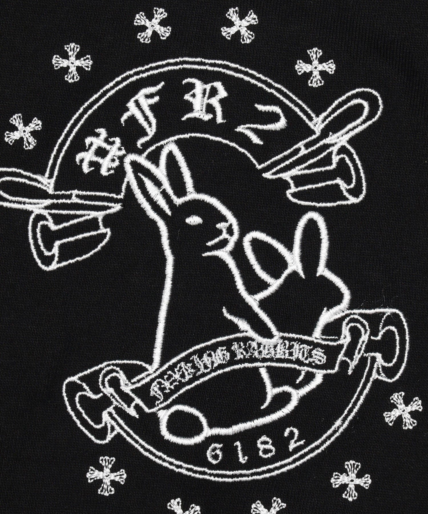 クロスをモチーフとした様々なロゴやアイコンにオリジナルのデザイン等を刺繍で全体に落とし込んだ一枚。一枚で着てもしっかりとした存在感のあるアイテム。 型番:FRC4287