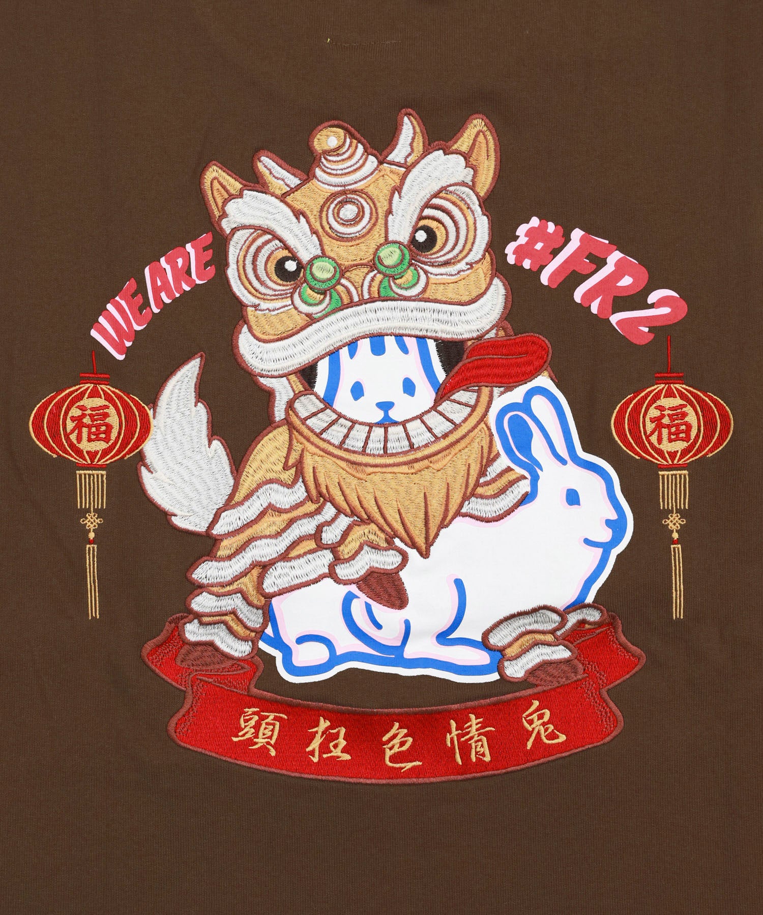 2026年のChinese New Yearに合わせTシャツとフーディーの2種のアイテムをリリース。 こちらは、迎春をイメージしたアイコンやロゴをバックにプリントと刺繍で落とし込んだ一枚。フロントは左胸にロゴ刺繍入り。 ブラックとブラウンの2色のボディを採用し、いずれのカラーもコーディネートに取り入れやすい仕上がり。 型番:FRC4319