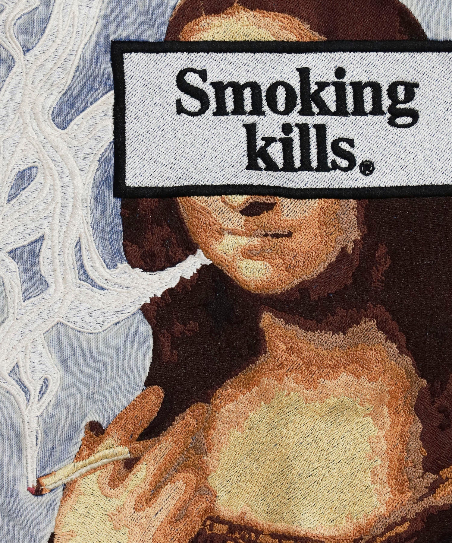 Acid Wash Smoking kills Embroidery Art Hoodie