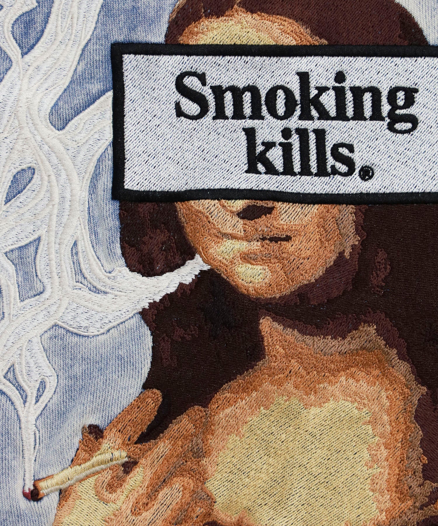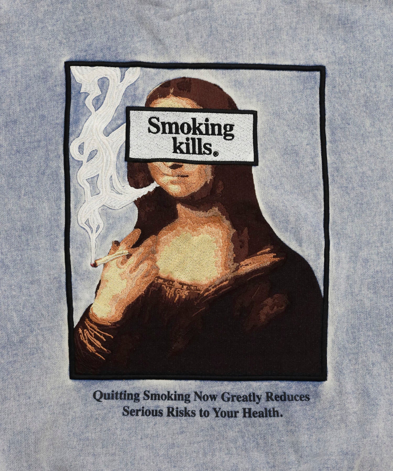 Acid Wash Smoking kills Embroidery Art Hoodie