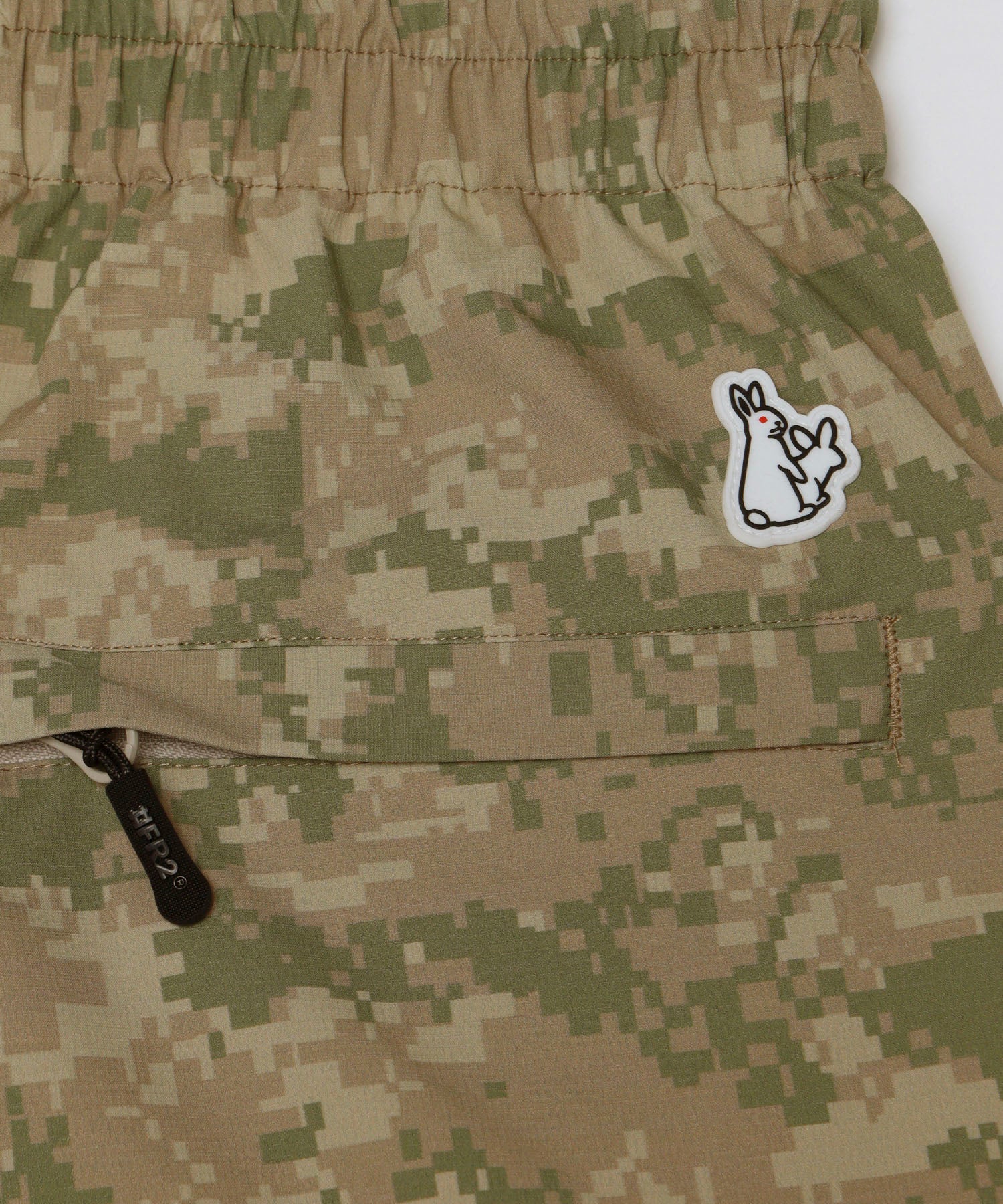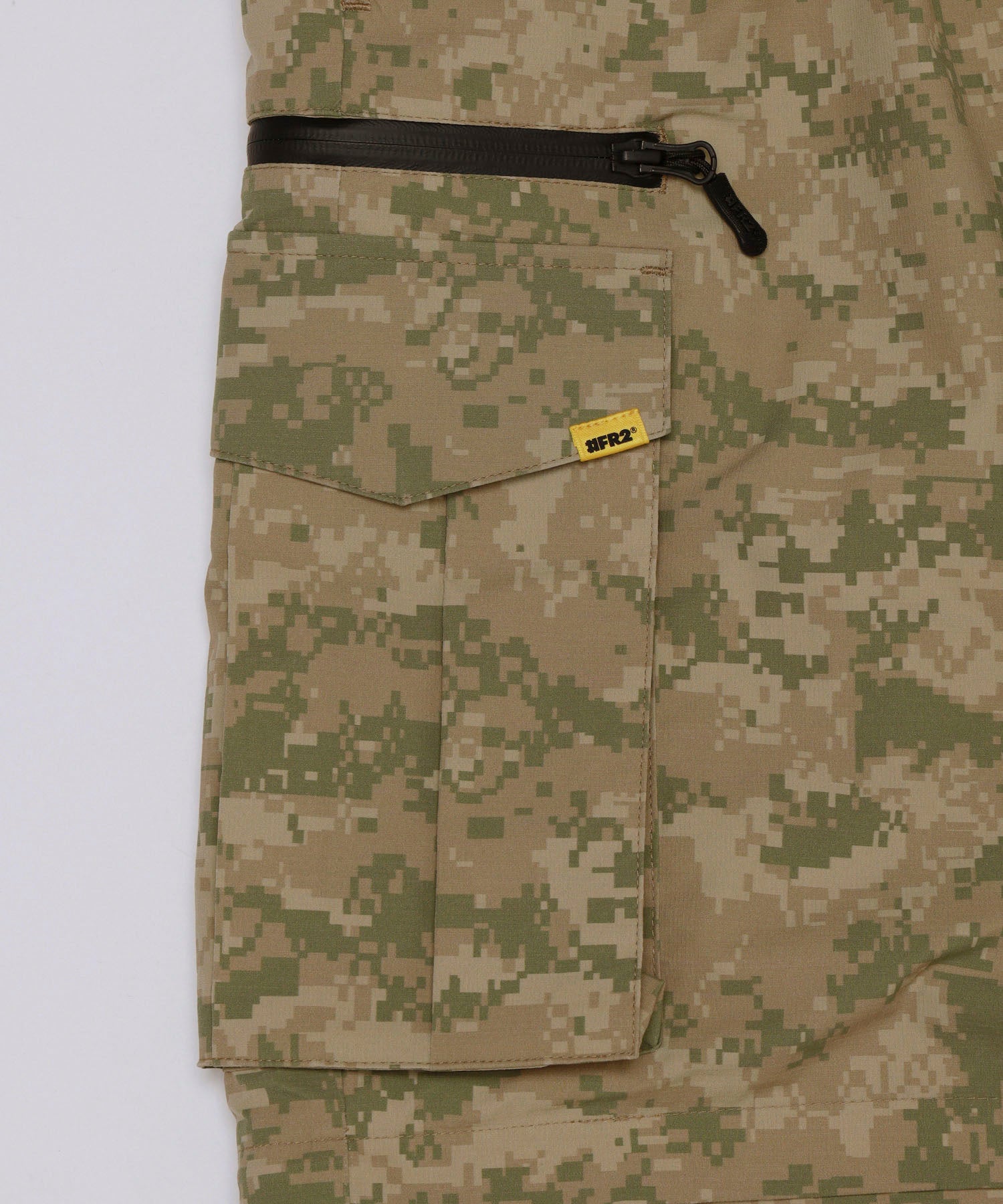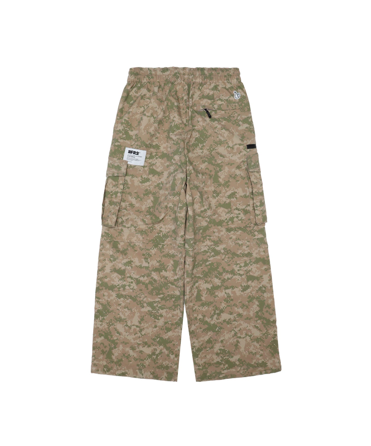 アウトドアでも使える強度のあるリップストップ生地を採用。膝にジップを取り付け膝から下を外したショートパンツとフルレングスでも楽しめる2wayタイプ。オリジナルのカモフラ柄とオールブラックの2色展開。ウエストはゴム紐で調整可。裾にもドローコード入り。 ウエスト:cm M:78~100 L:82~104 XL:86~108 型番:FRP416