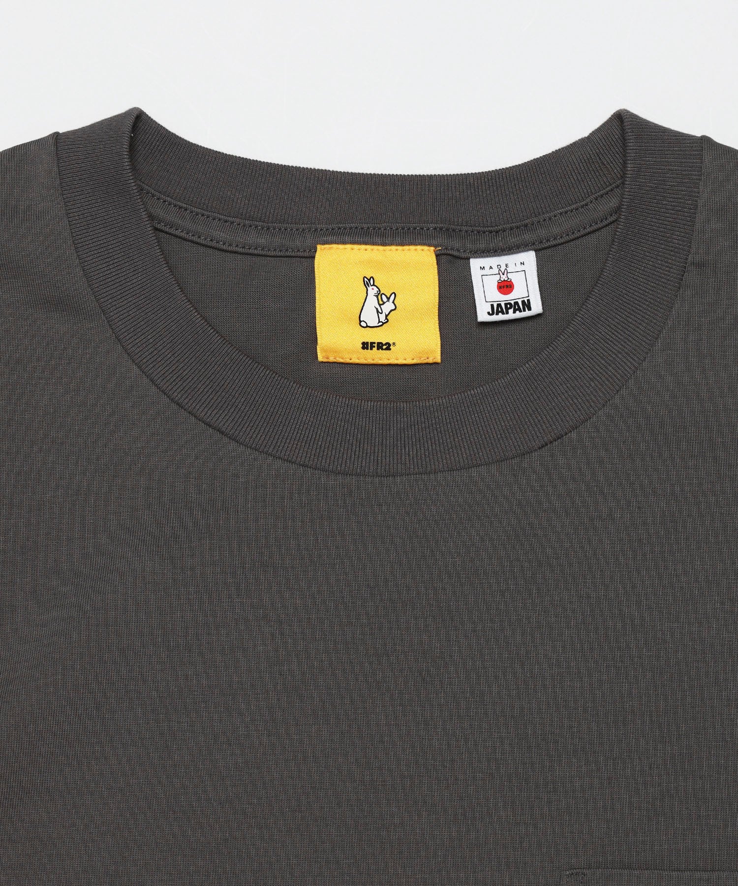 日本製のTシャツ。ボディと同色のポケットとネックにはオリジナルのタグ付き。裾のアイコンワッペンも特別仕様。 型番:FRC4354