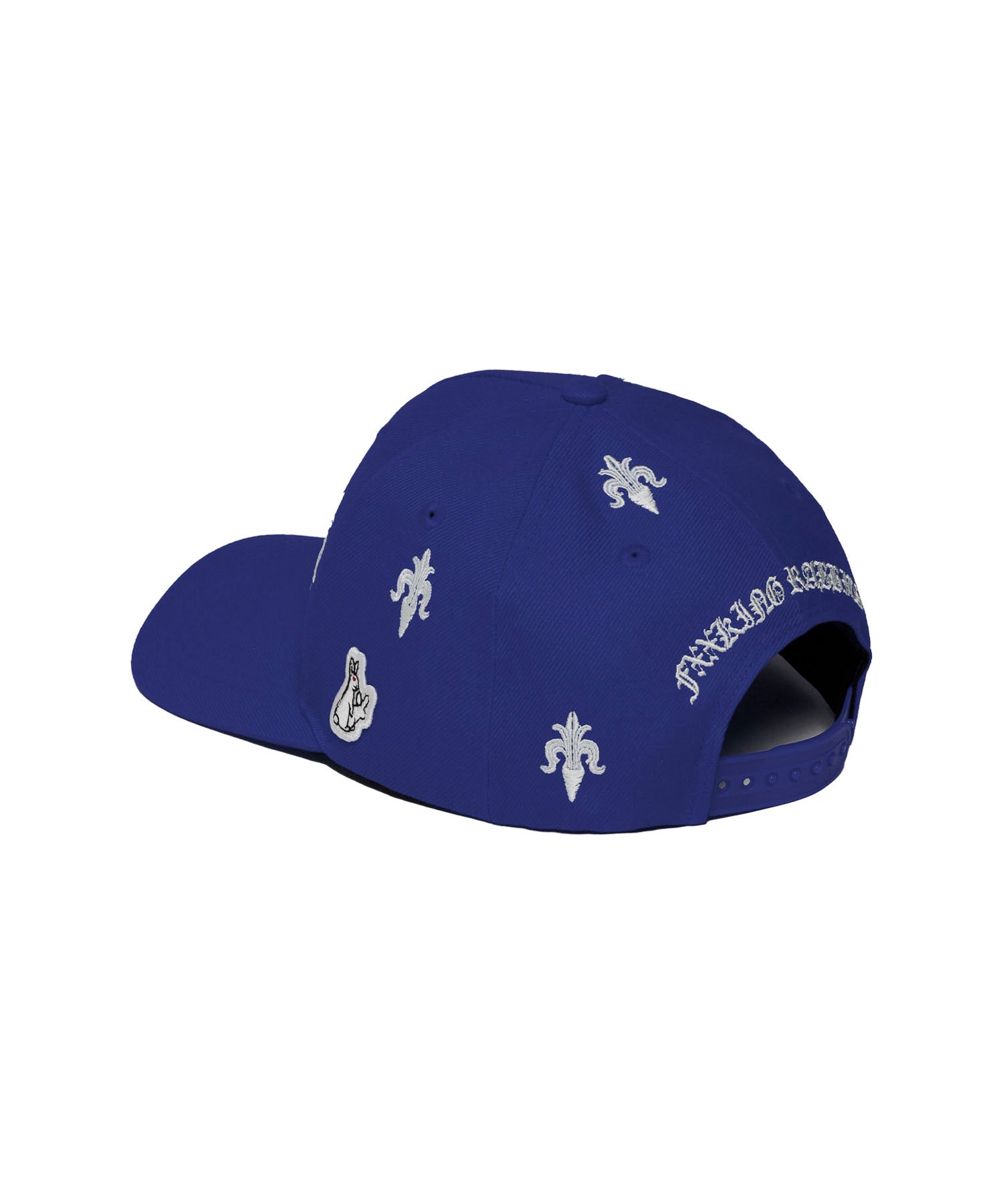 ロゴやグラフィックデザインを刺繍の総柄で落とし込んだスナップバックキャップ。内側はオリジナルテープを配置。 型番:FRA2015