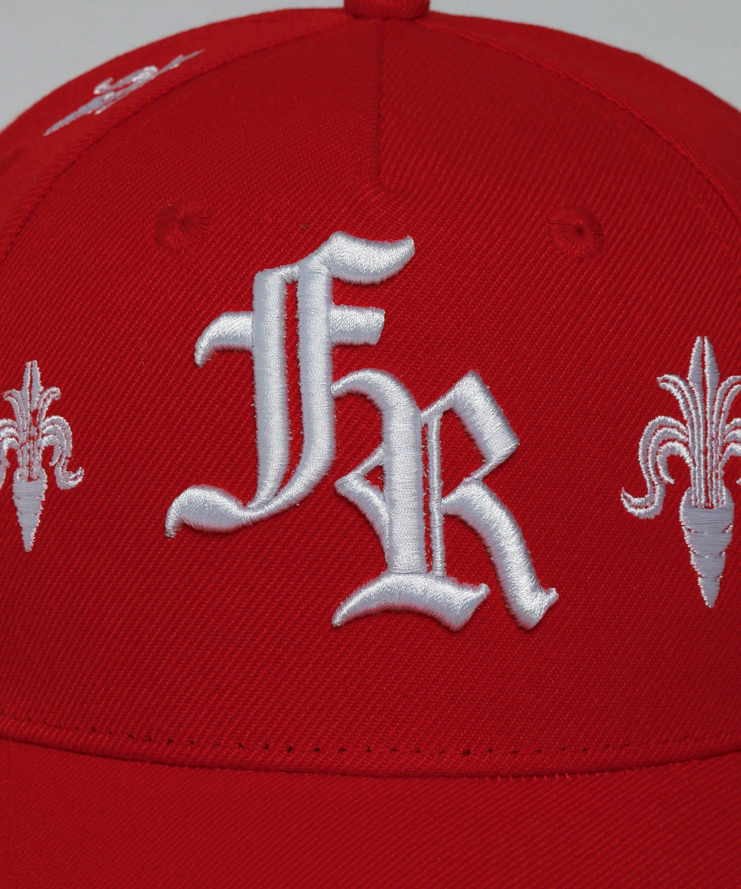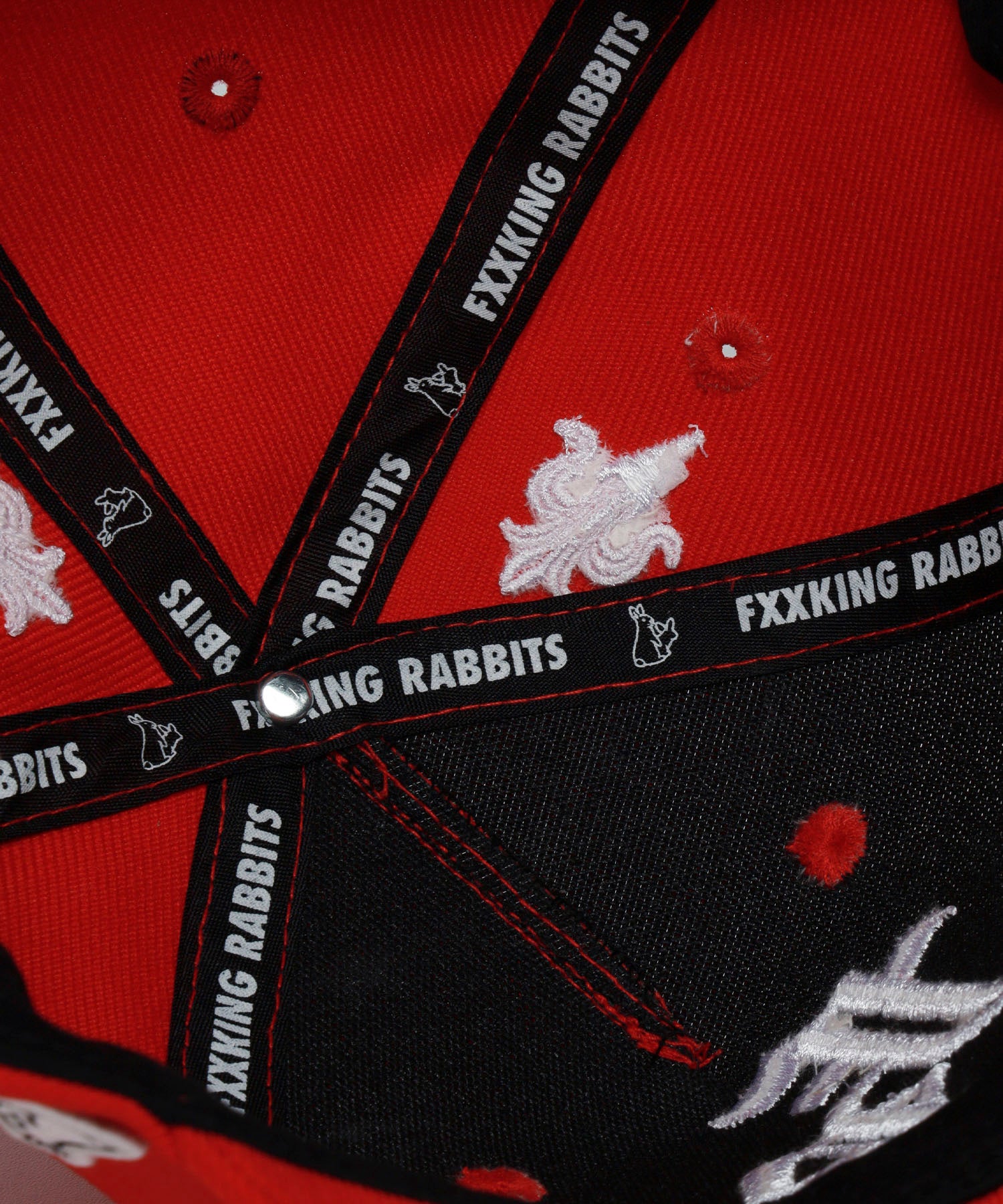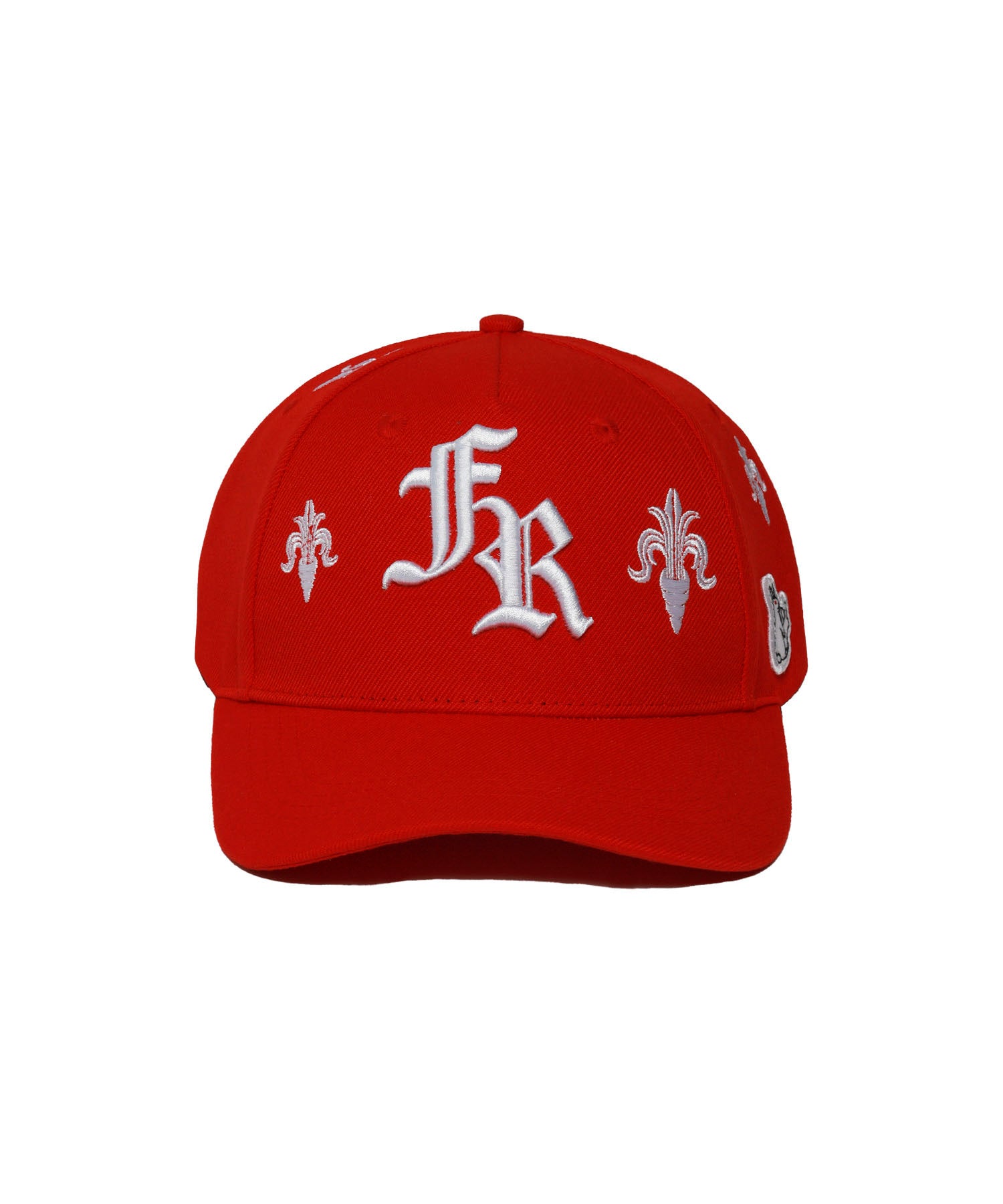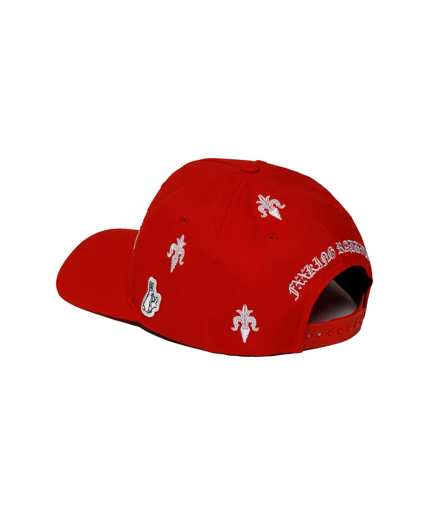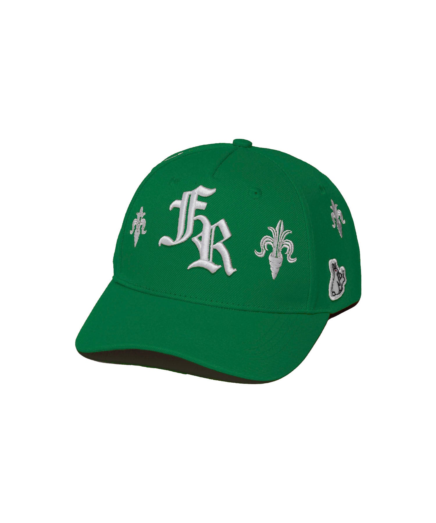 ロゴやグラフィックデザインを刺繍の総柄で落とし込んだスナップバックキャップ。内側はオリジナルテープを配置。 型番:FRA2015