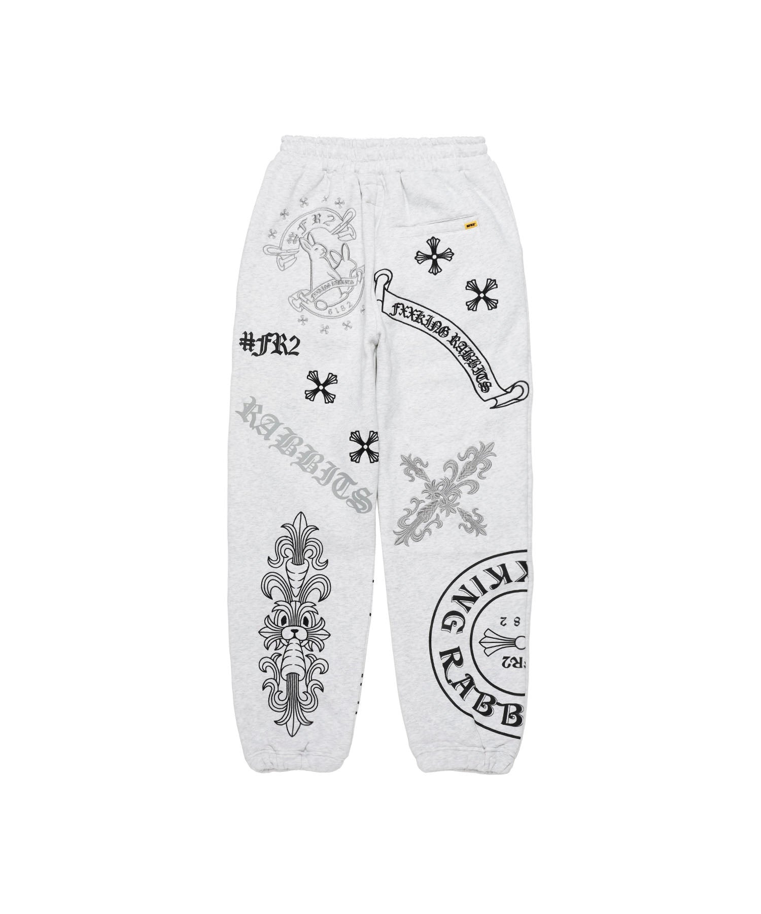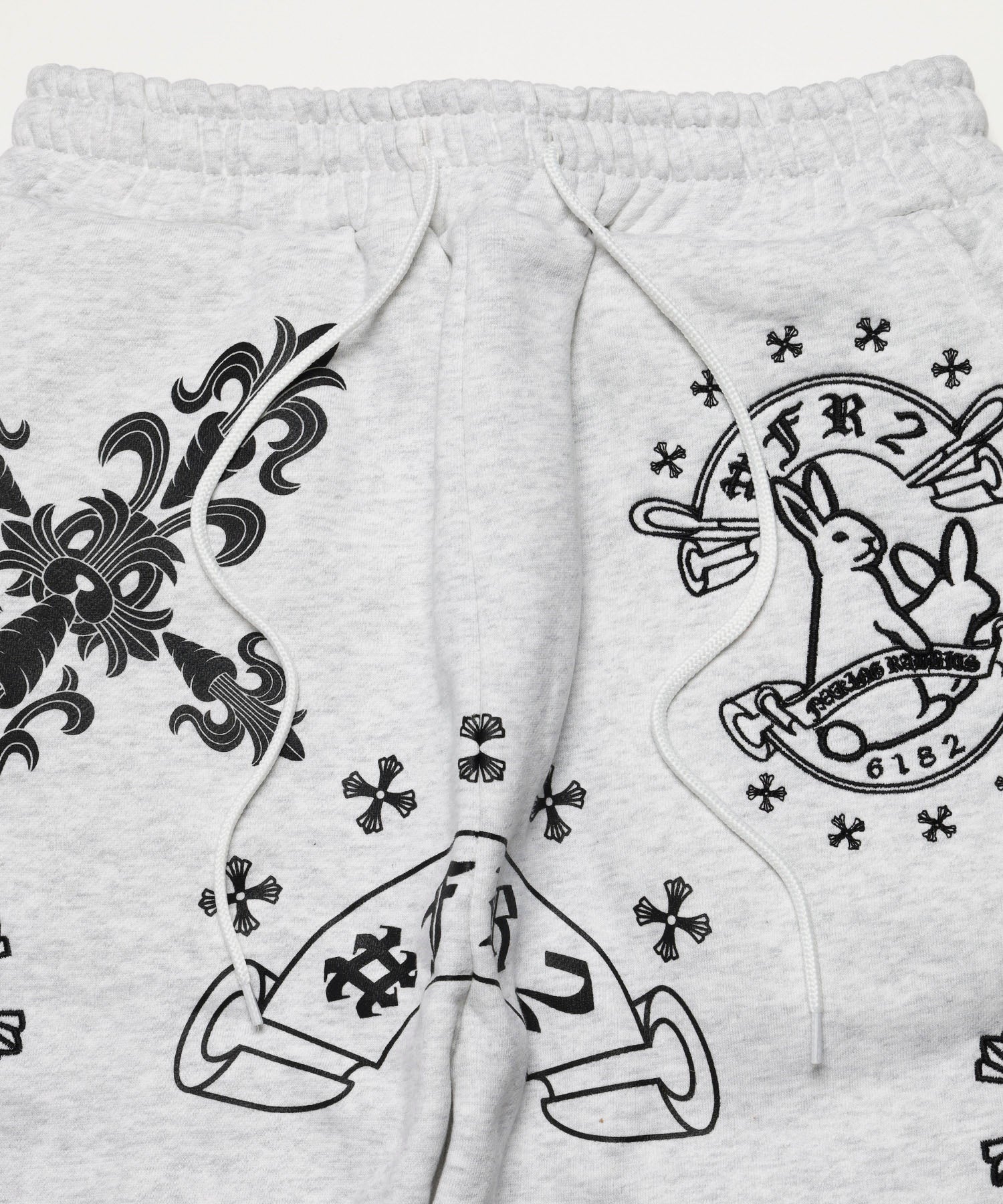 オリジナルのグラフィックをプリントと刺繍を用いて総柄で落とし込んだパンツ。裏起毛で温もりも有。ウエストはゴム紐入り。 サイズに関して ウエスト M・・・約68.0 ~ 94.0 L・・・約72.0 ~ 100.0 XL・・・約74.0 ~ 102.0 裾幅 M・・・約24.0 ~ 36.0 L・・・約26.0 ~ 38.0 XL・・・約28.0 ~ 40.0 単位:cm 型番:FRP433