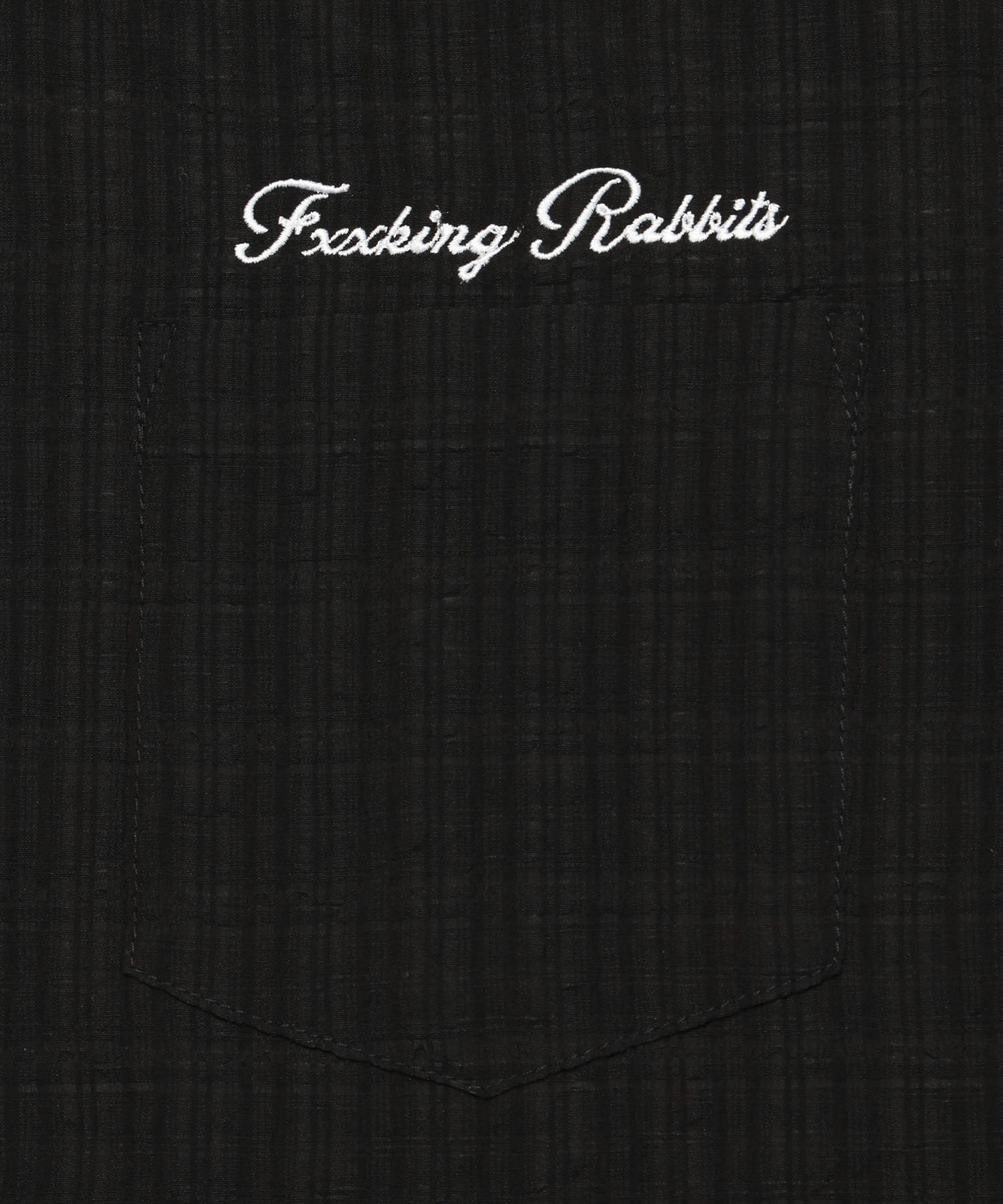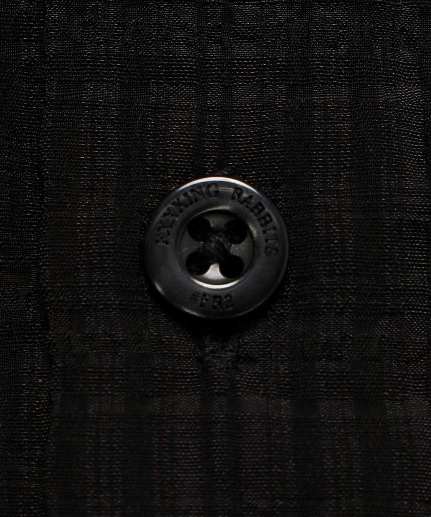 レーヨンとナイロン混で柔らかく肌触りの良い生地。透け感もあり着心地良好。フロントのロゴは刺繍、釦はオリジナル。 型番:FRS057